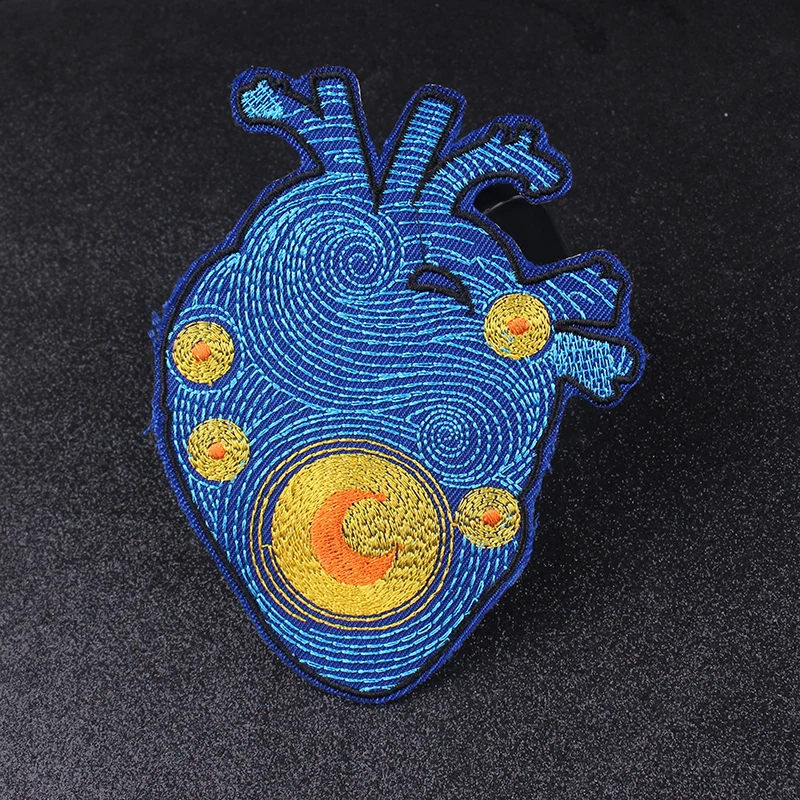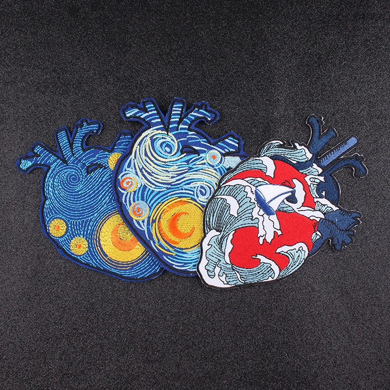 Parches bordados de corazón para ropa Van Gogh, parches de hierro para ropa, pegatina para ropa, tela ondulada, accesorios para ropa, tela