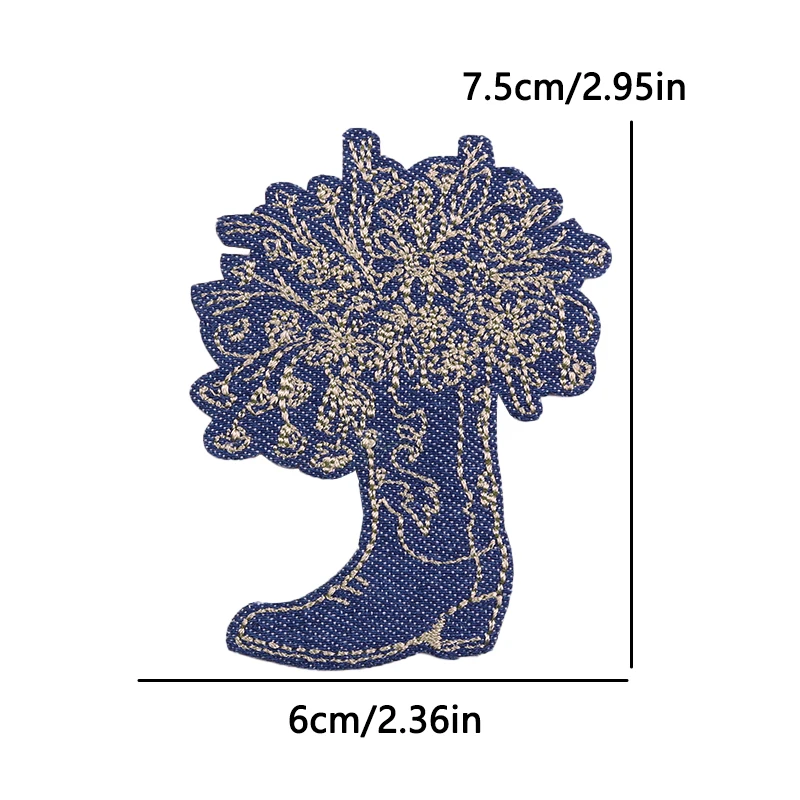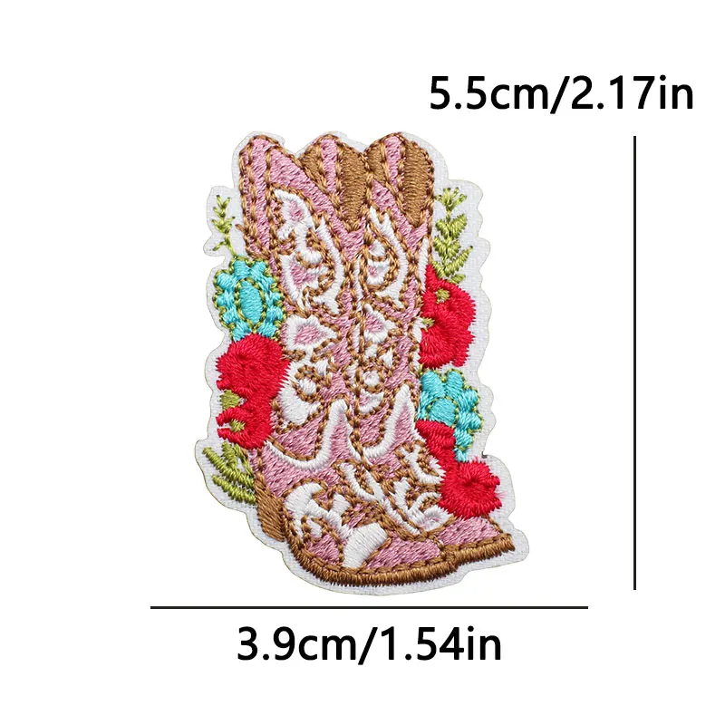 Parches bordados de vaqueros/botas occidentales, parches termoadhesivos para ropa, sombreros, chaquetas, apliques