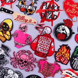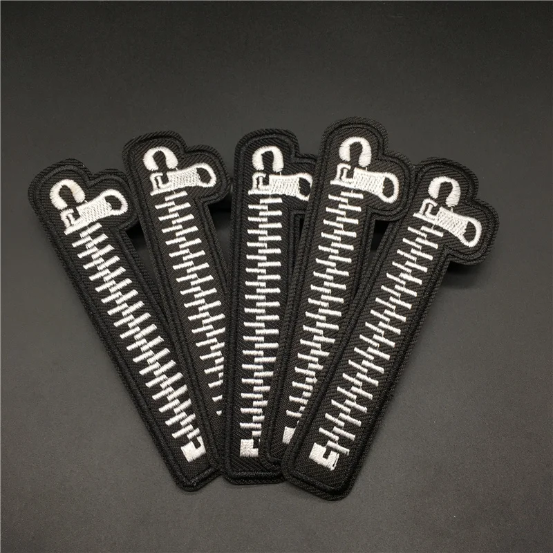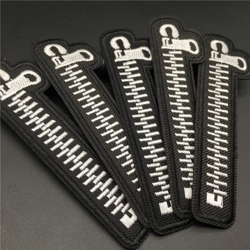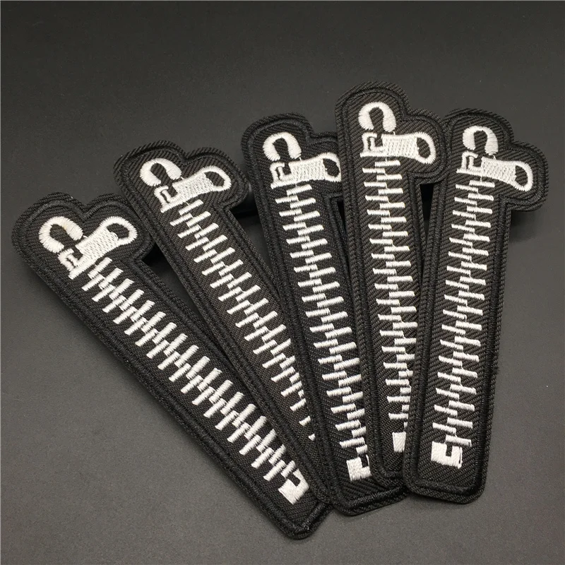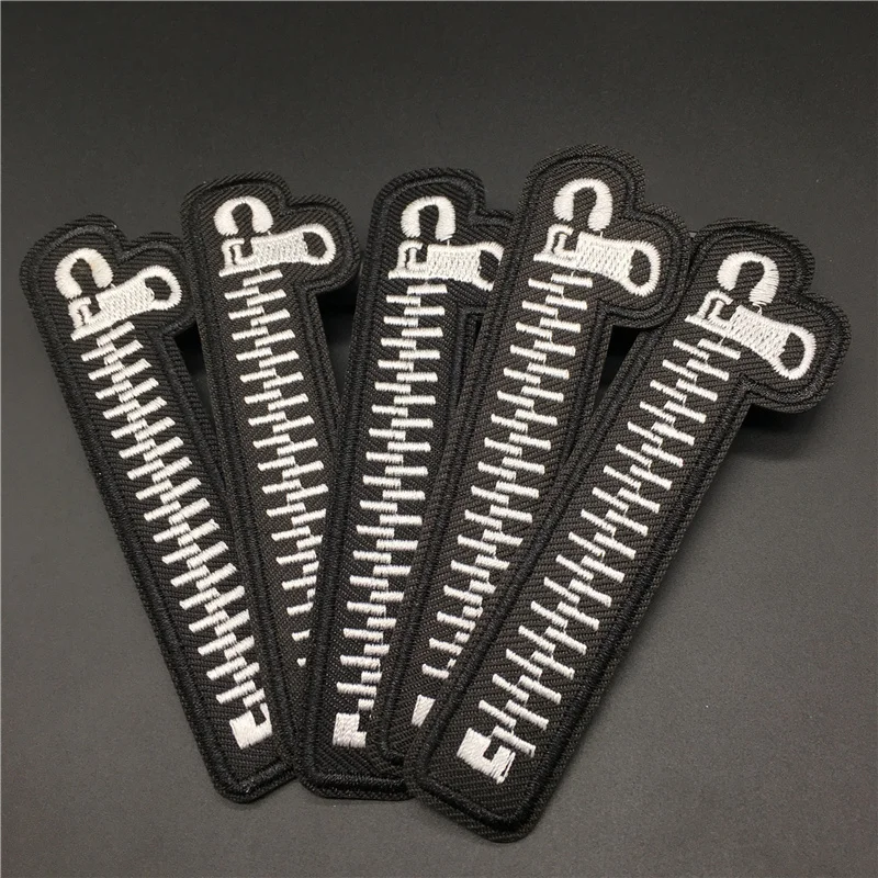 Parches bordados con cremalleras de 5 piezas para ropa, rayas Punk, blanco y negro, insignias Diy, parches de planchado para ropa, apliques de costura