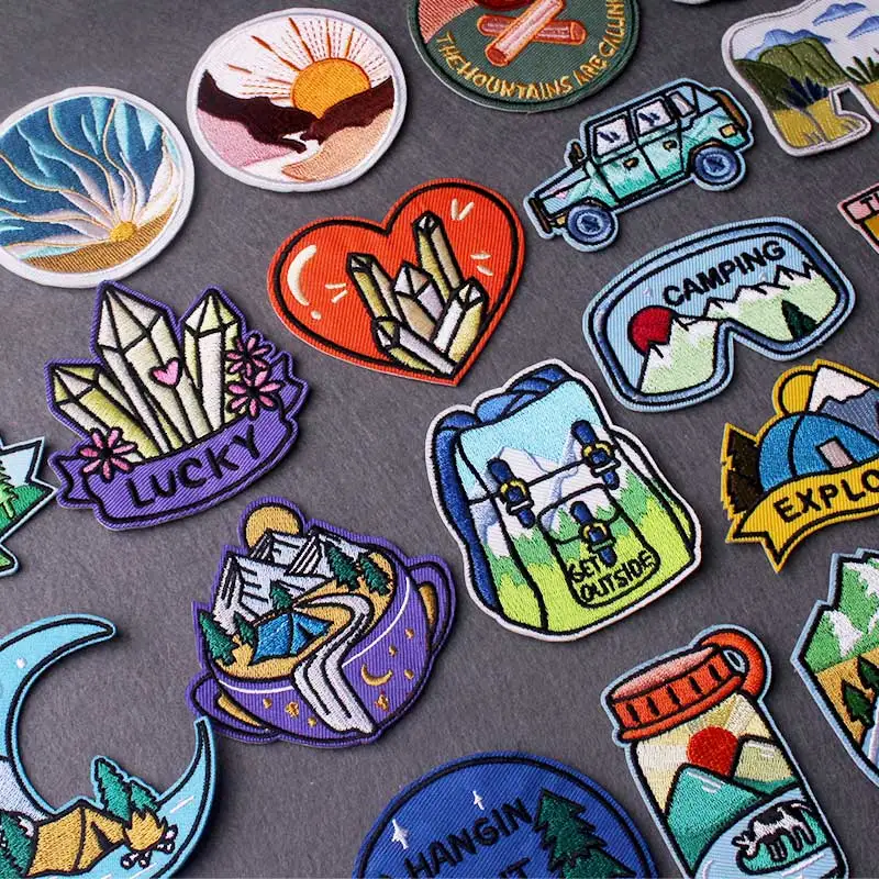 Parche de cristal para planchar, parches bordados para ropa, ropa de aventura, parches termoadhesivos para ropa, rayas DIY para acampar
