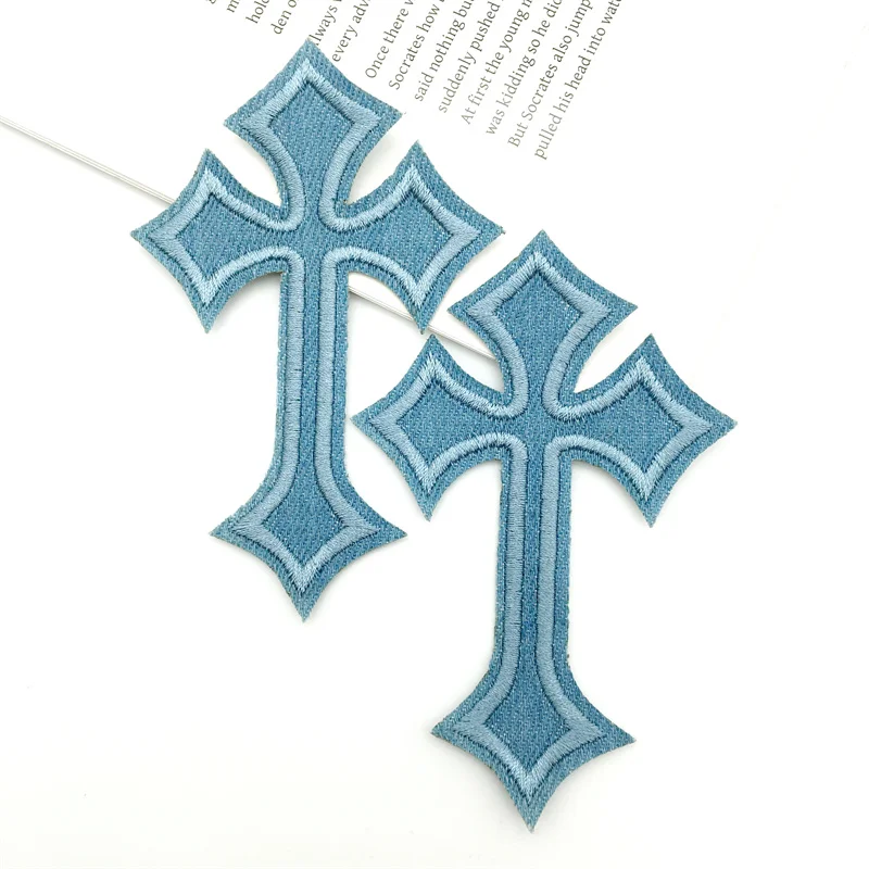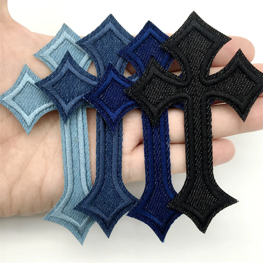 Parches bordados cruzados de 2 piezas para ropa, parches para planchar, apliques, pegatinas de costura de rayas DIY, vaqueros, mezclilla