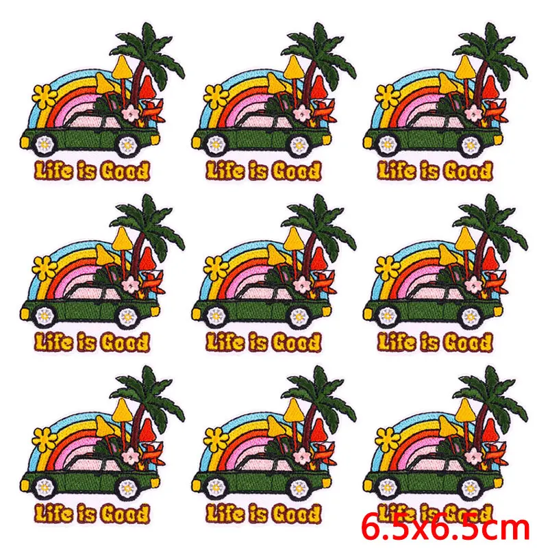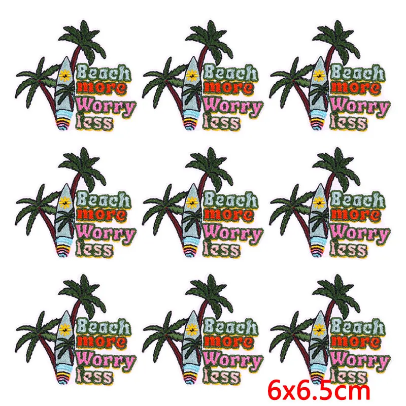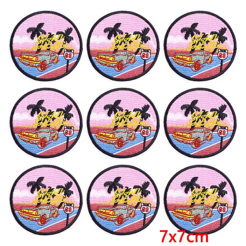10 unids/lote, venta al por mayor, parche para pasar las vacaciones, parches para planchar en la ropa, parches bordados para acampar al aire libre para decoración de ropa