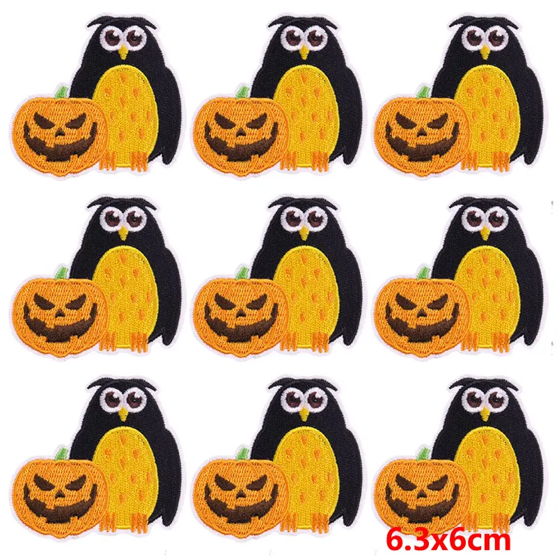 10 unids/lote de parches bordados de dibujos animados de animales en la ropa, parche bordado de Halloween, parches de hierro para decoración de apliques de ropa