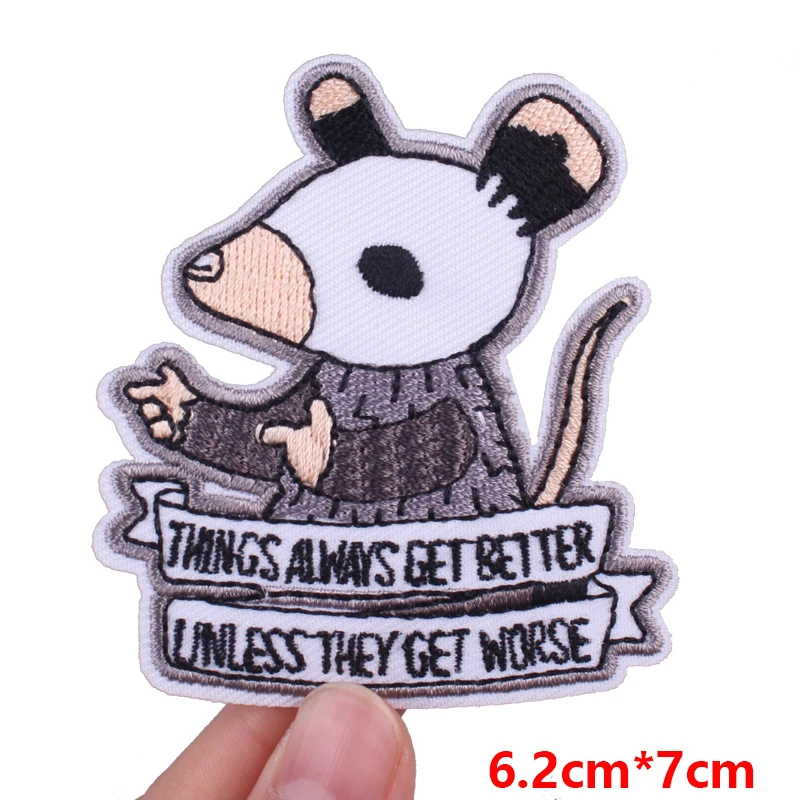 Funny Cartoon Embroidered Patches DIY Animal Cat Mouse Patch Iron On Patches For Clothing Jackets Backpack Sew Badges Stickers