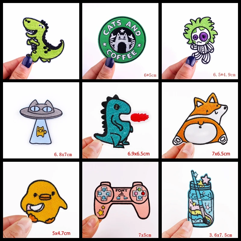 Apliques bordados de dibujos animados, parches de gato dinosaurio Corgi para ropa, pegatinas, insignias de animales, parches para planchar en ropa de niños, bricolaje