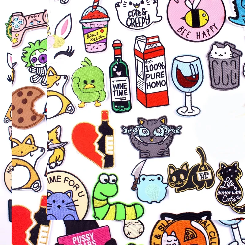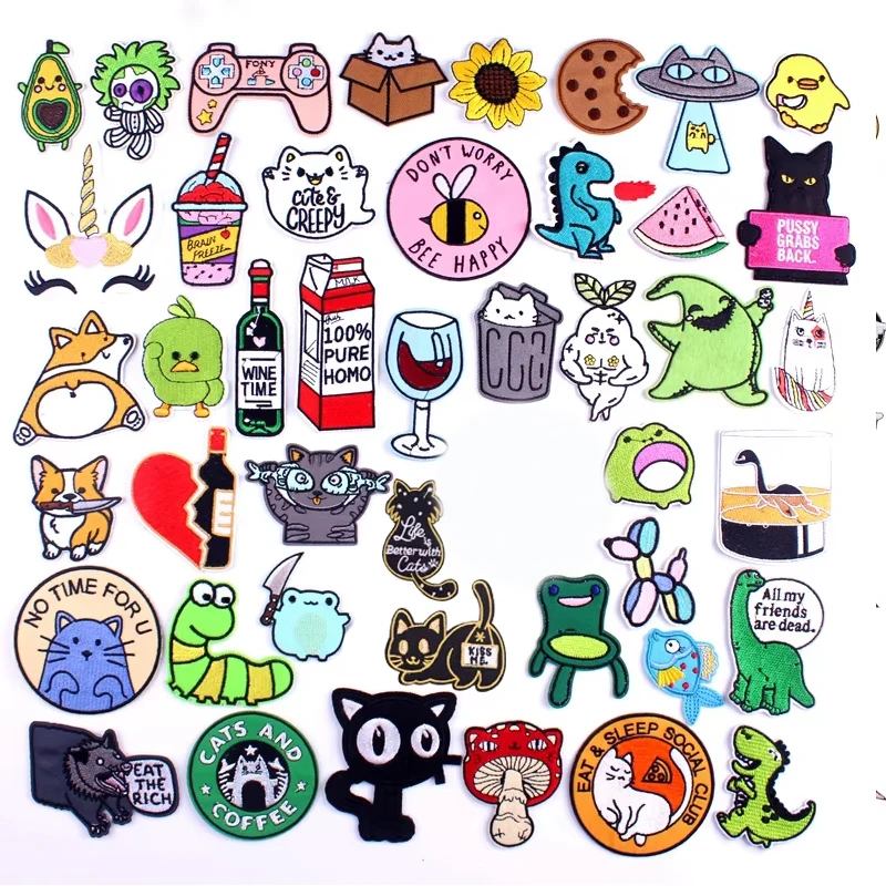 Parches bordados de dibujos animados de gato, dinosaurio, Corgi, pegatinas para ropa, insignias de animales, parches para planchar, ropa para niños DIY