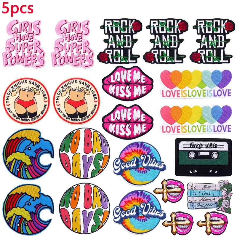 Parches bordados de dibujos animados/letras coloridos para ropa, cinta DIY, parche de ondas, parches para planchar para ropa, chaquetas, pegatinas, 5 uds.