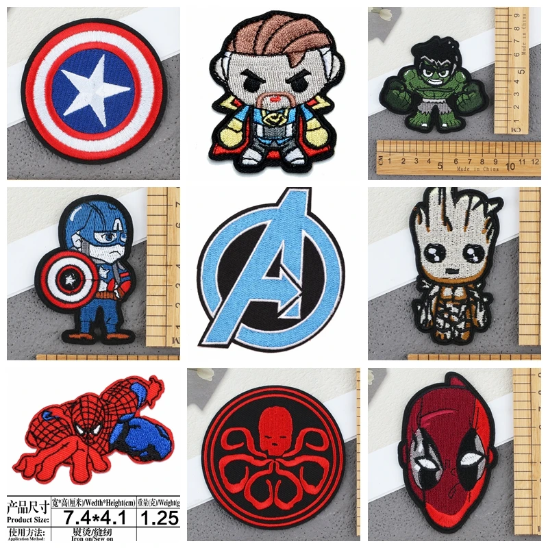 Parches para planchar con bordado de dibujos animados de Marvel, parche termoadhesivo para ropa, chaqueta, Spider-Man, Capitán América, Hulk, Iron Man