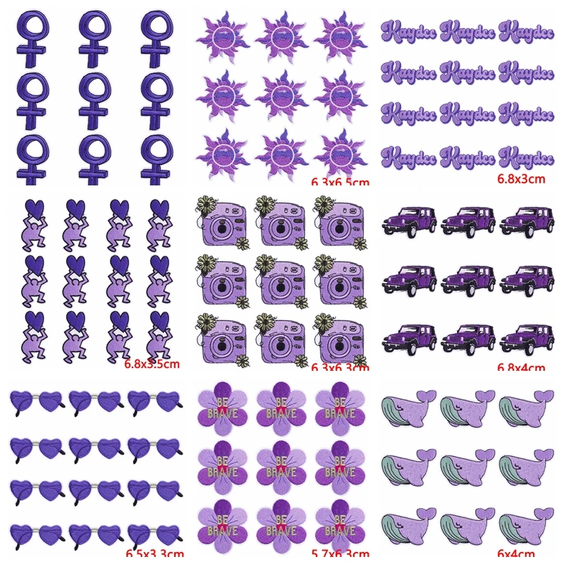 Parches bordados de dibujos animados morados para ropa, parche termoadhesivo para planchar en la ropa, parche de arcoíris, venta al por mayor, 10 unidades por lote
