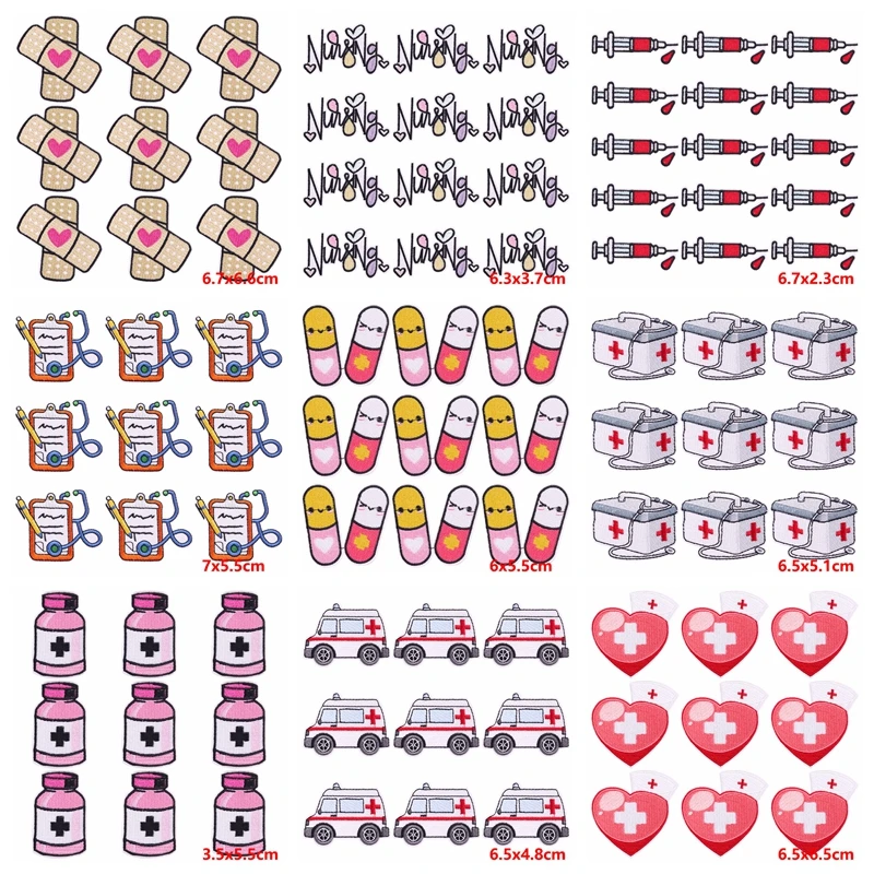 10 unids/lote de pastillas, parches bordados de dibujos animados en la ropa, parche de simulación de Doctor, parches de hierro para ropa, insignias de apliques