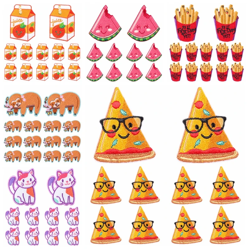 Parches bordados de dibujos animados para ropa de niños, parche para planchar con frutas, Pizza y bebidas, 10 unids/lote por lote