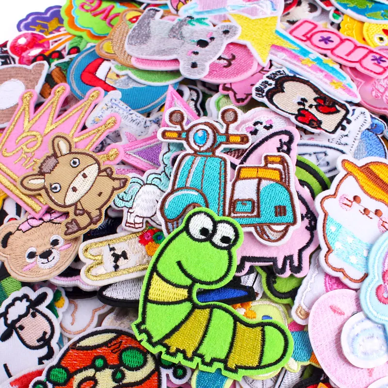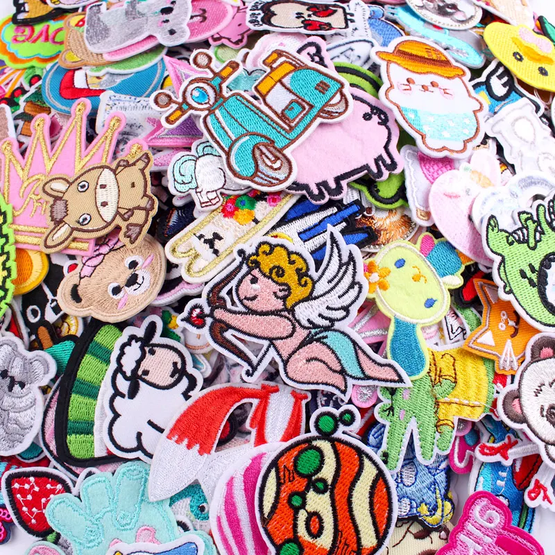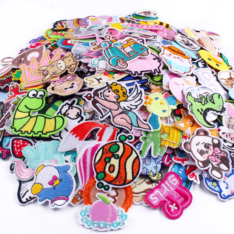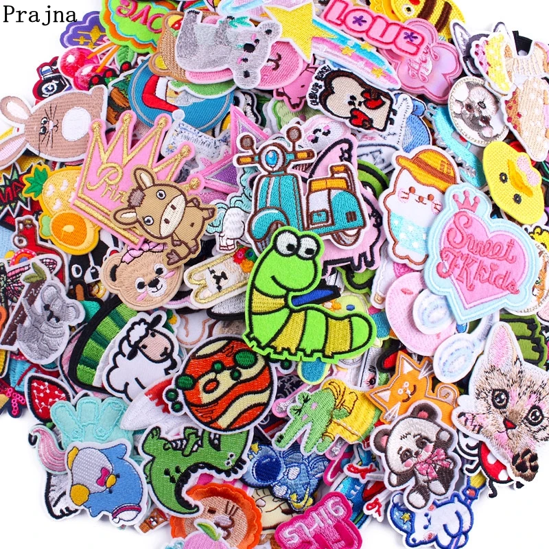 10/20/30 Uds. Parches bordados de dibujos animados mezclados al azar en ropa de chico apliques pegatinas de animales parches de hierro para ropa DIY