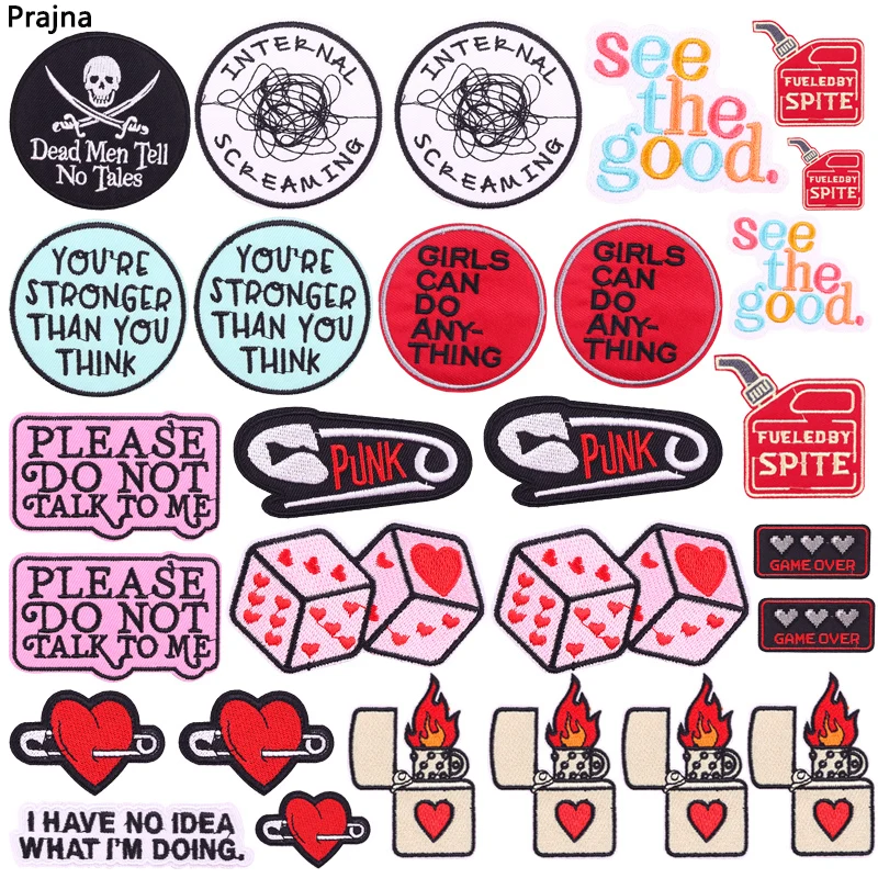 Parche de dados de corazón de amor para ropa, parches bordados de dibujos animados para ropa, Jean, parche con eslogan de letras de personalidad DIY, parches para planchar, 10 piezas