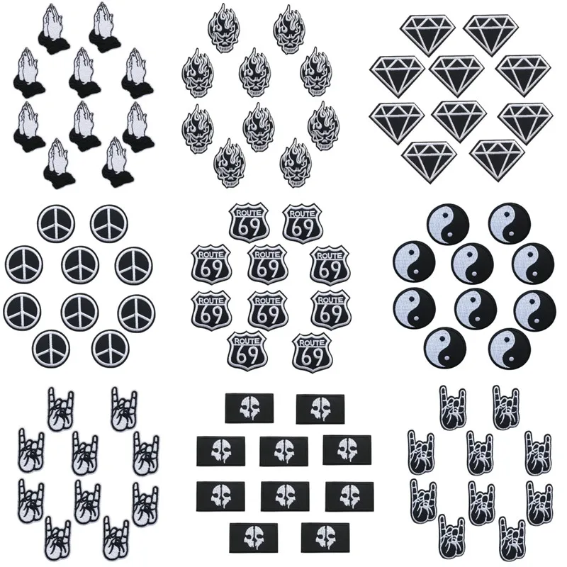 Parches bordados de dibujos animados para ropa, parches termoadhesivos, insignias Punk divertidas, apliques de costura a mano para chaqueta, 10 piezas