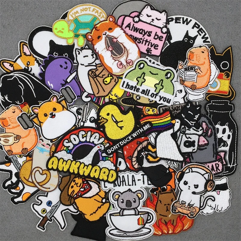 Parches bordados de dibujos animados para ropa, pegatinas para chaqueta, Jeans, apliques de rayas, DIY, 45 unidades por lote