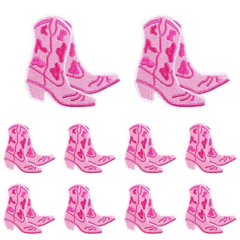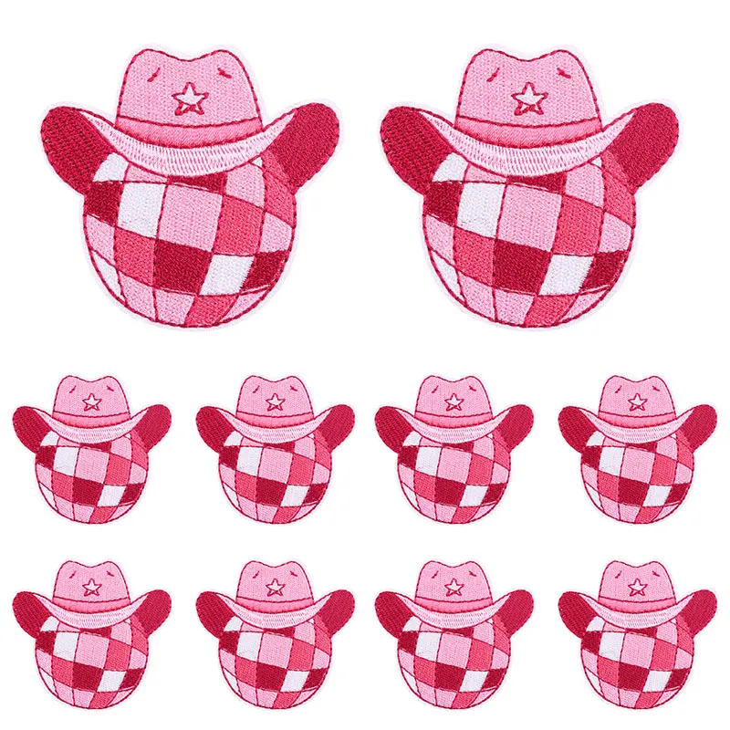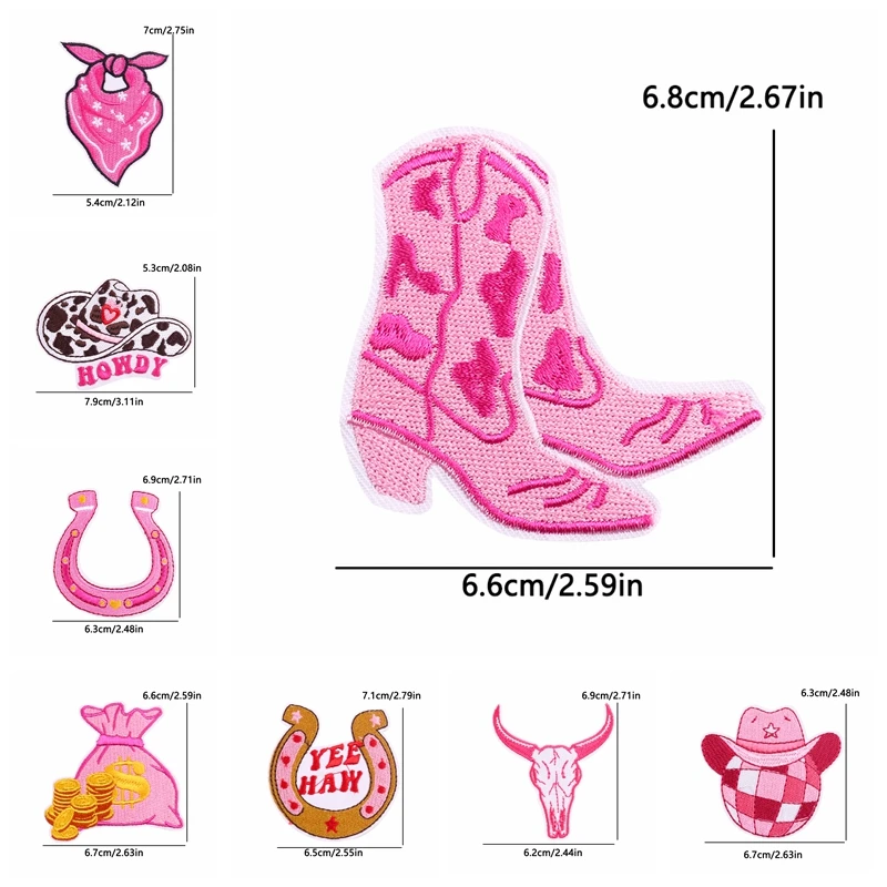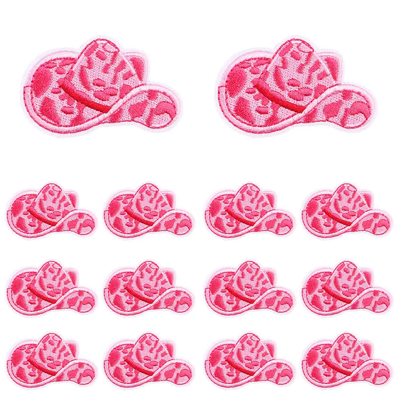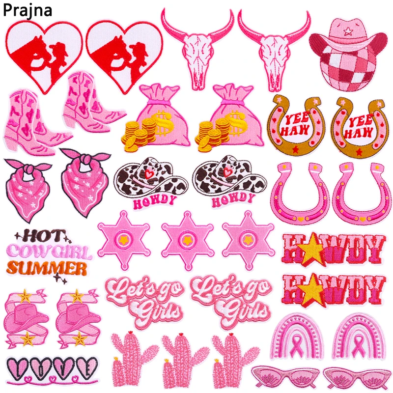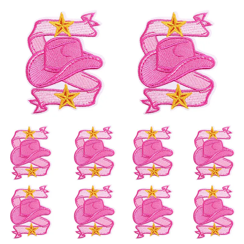 Parche bordado de vaquero rosa/occidental de dibujos animados de 5, parches para planchar DIY para ropa, chaquetas, pantalones vaqueros, sombreros, pegatina para coser
