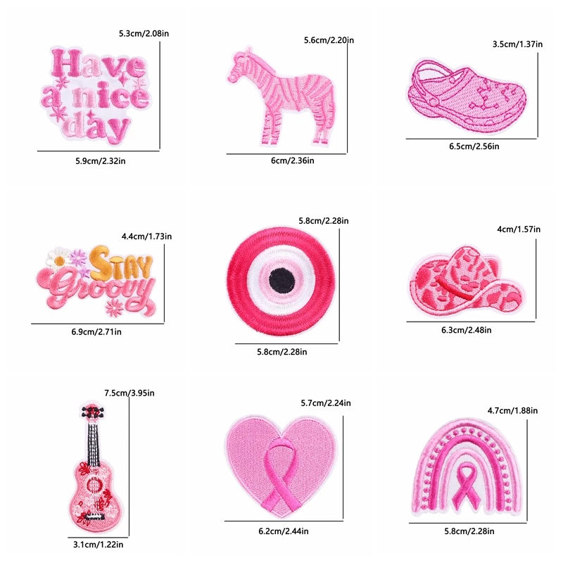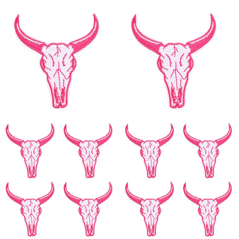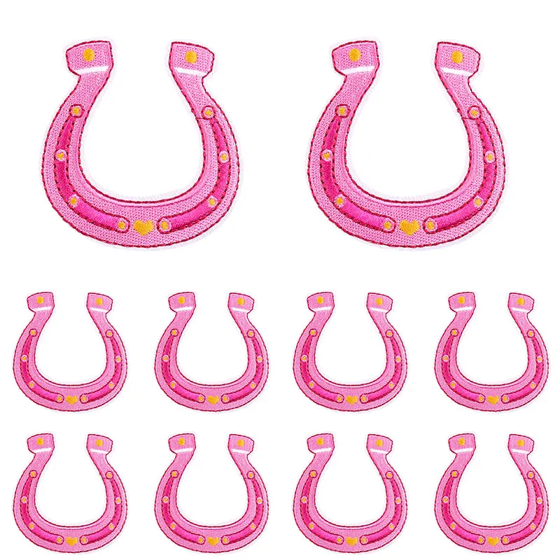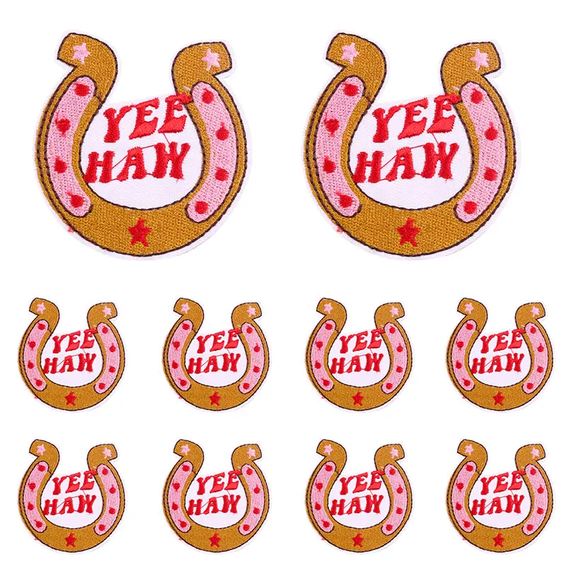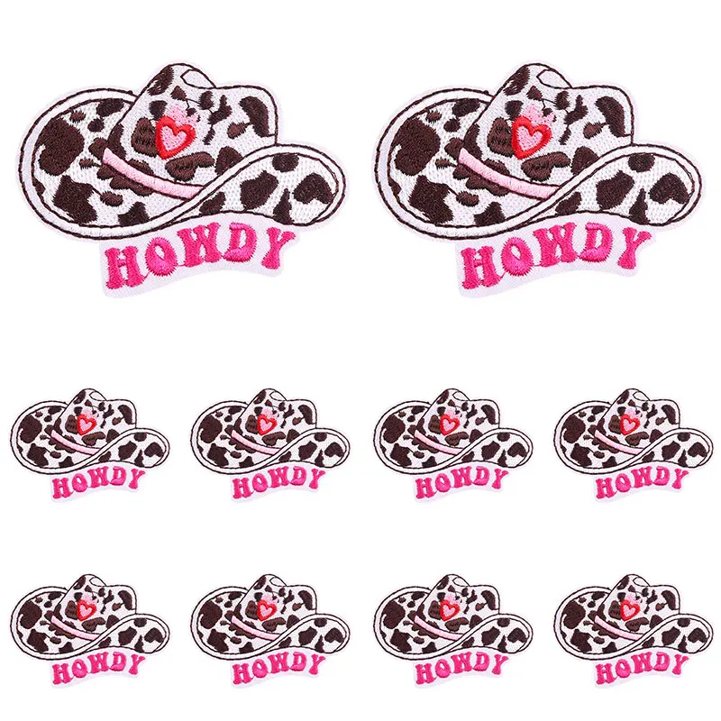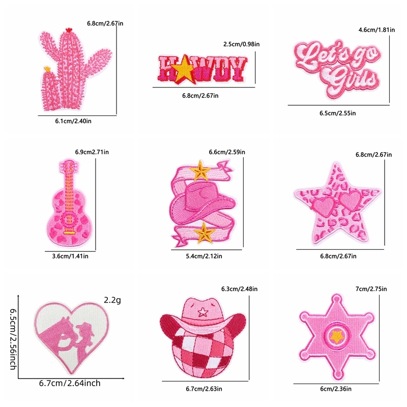 Parche bordado de vaquero rosa/occidental de dibujos animados de 5, parches para planchar DIY para ropa, chaquetas, pantalones vaqueros, sombreros, pegatina para coser