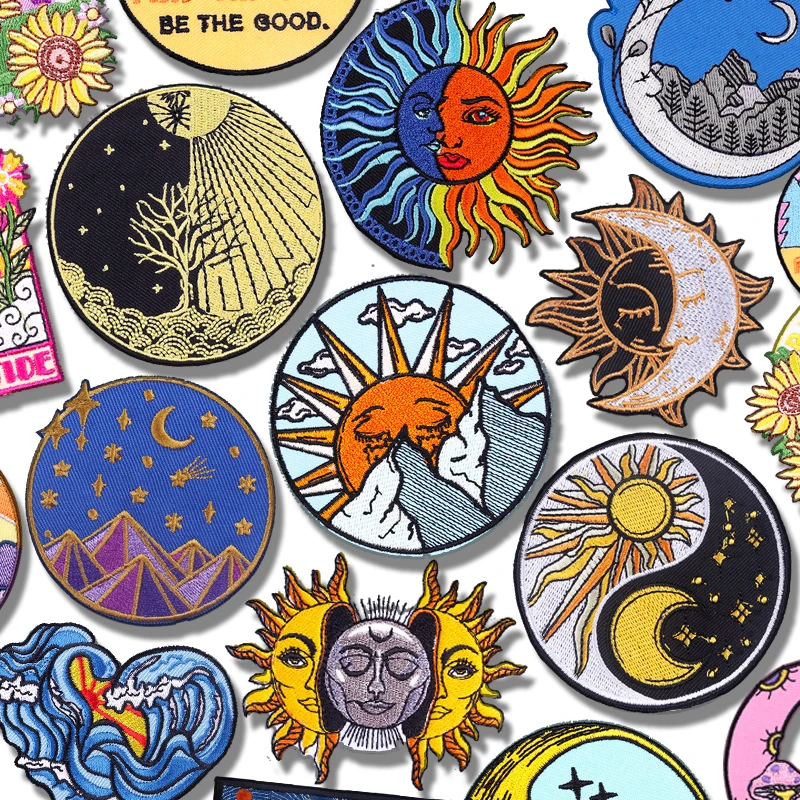 Parches bordados de dibujos animados/sol, parches para planchar para ropa, parches termoadhesivos para ropa, chaquetas, pantalones vaqueros, bordado para coser DIY