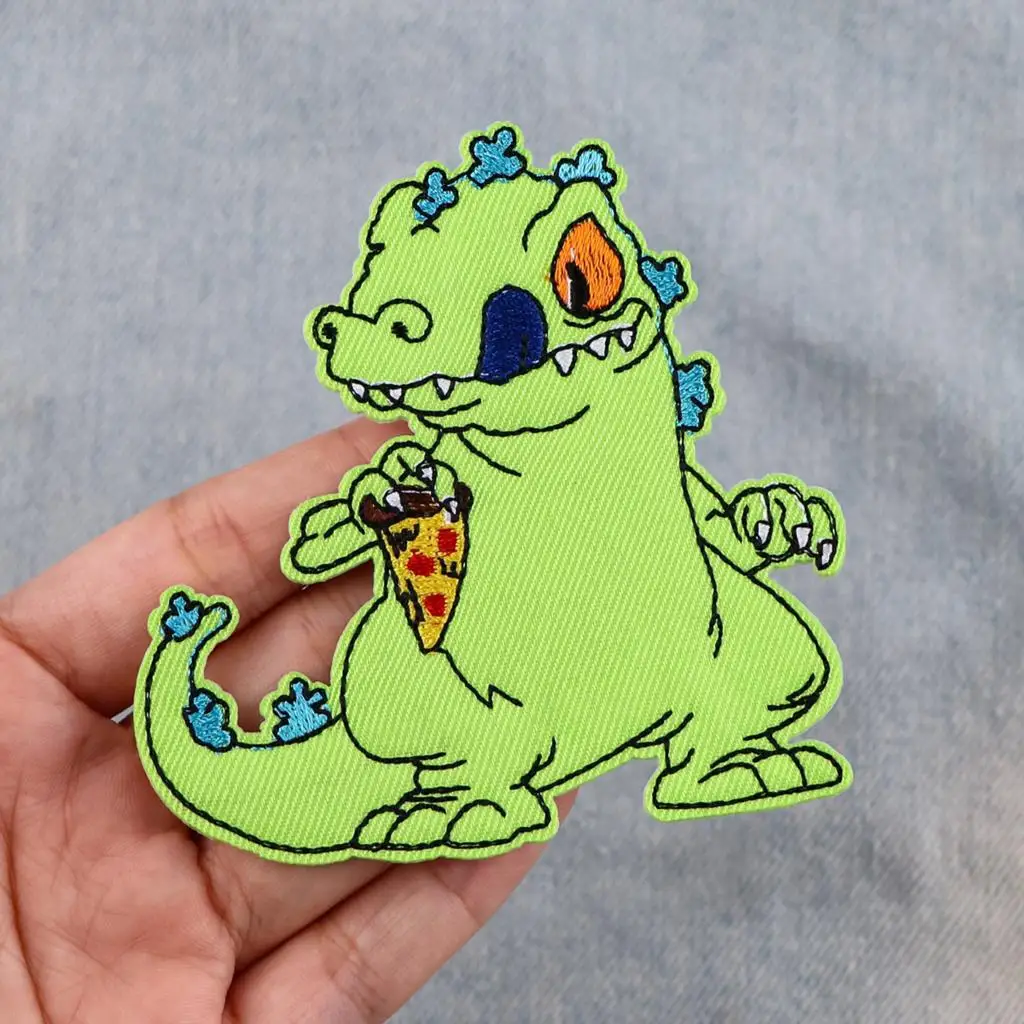 Parches bordados de dinosaurio de dibujos animados para ropa, parches bonitos para ropa, pegatinas para planchar, parches, rayas de animales, apliques Diy