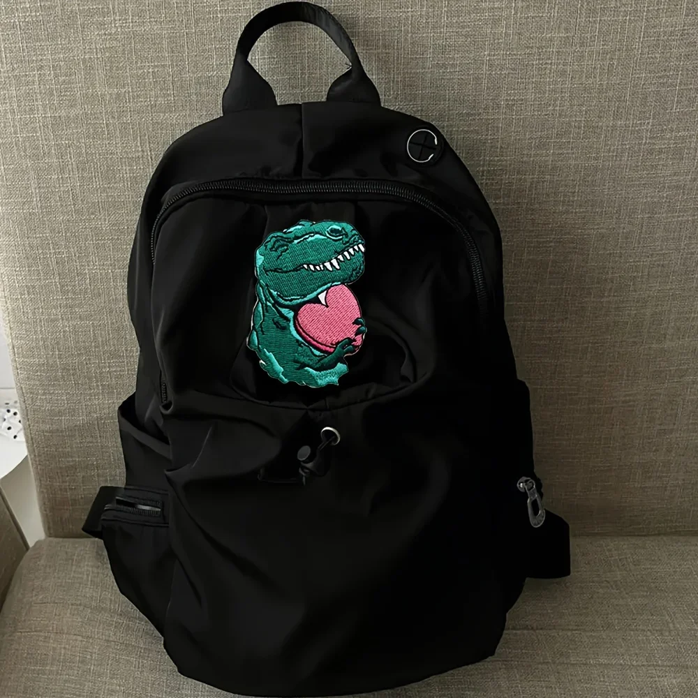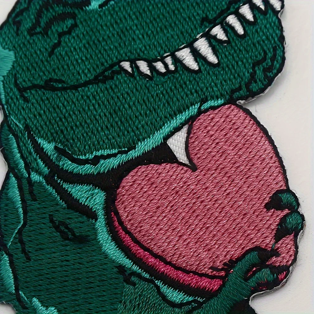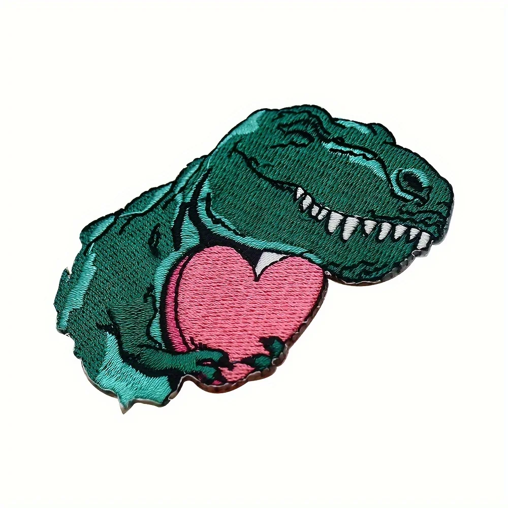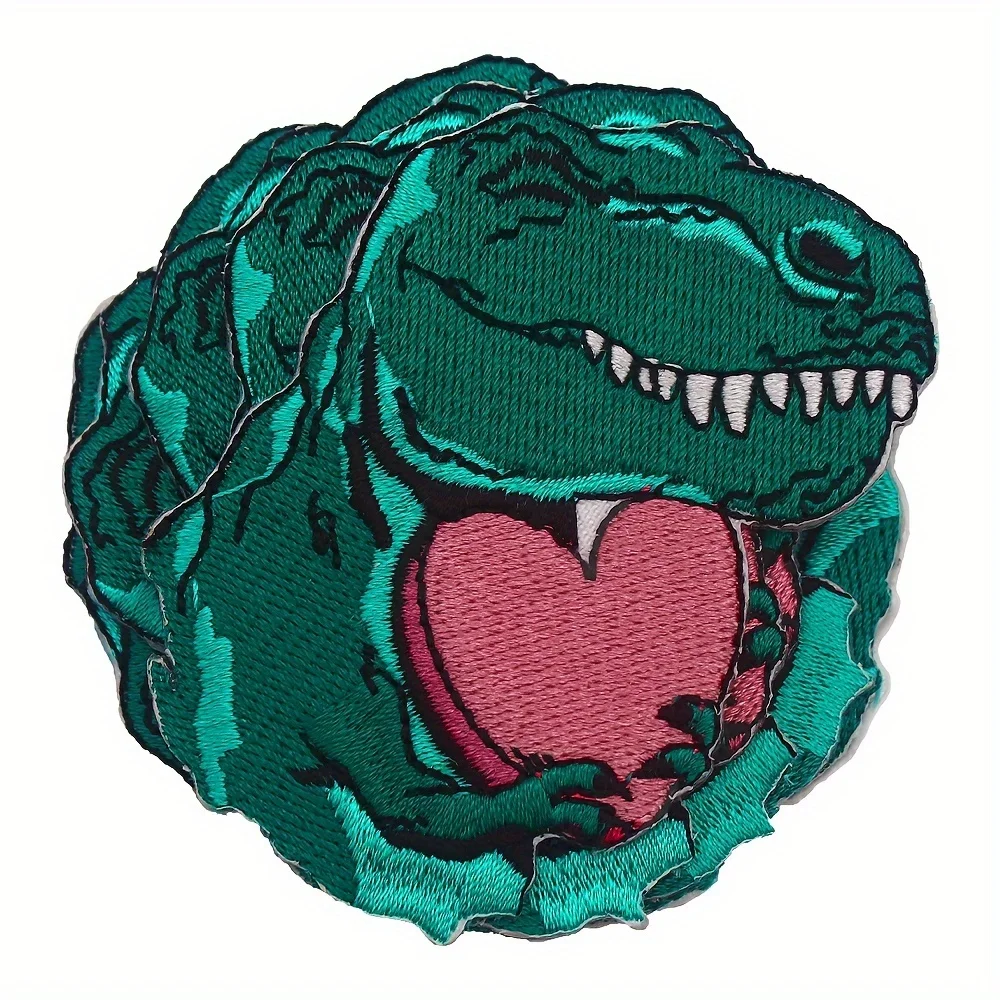 Parches bordados de dinosaurio t-rex sosteniendo un corazón, apliques termoadhesivos de dibujos animados divertidos y bonitos para chaquetas, mochilas, sombreros DIY, 1 ud.