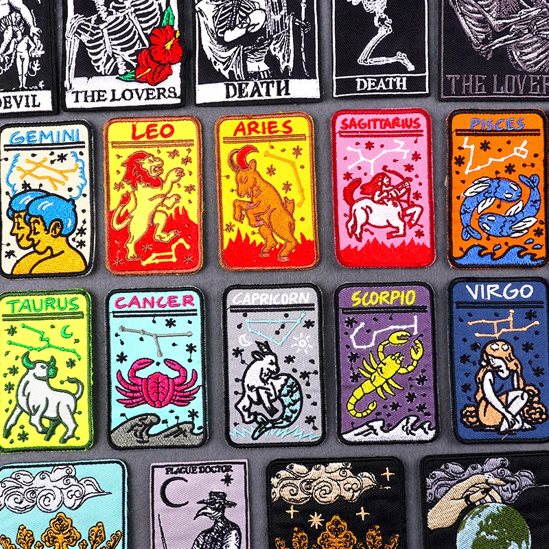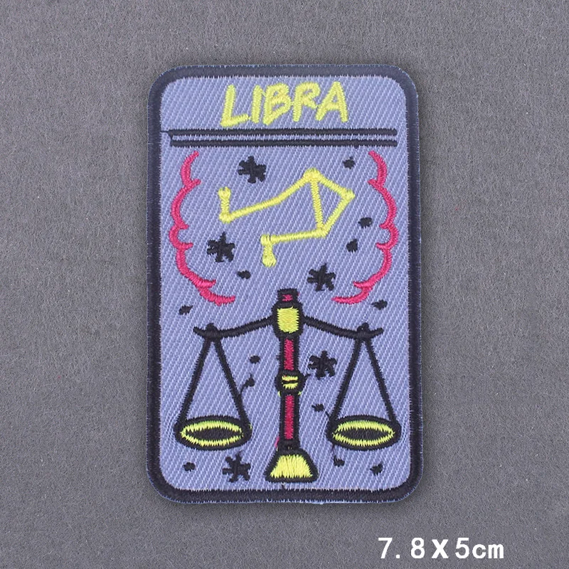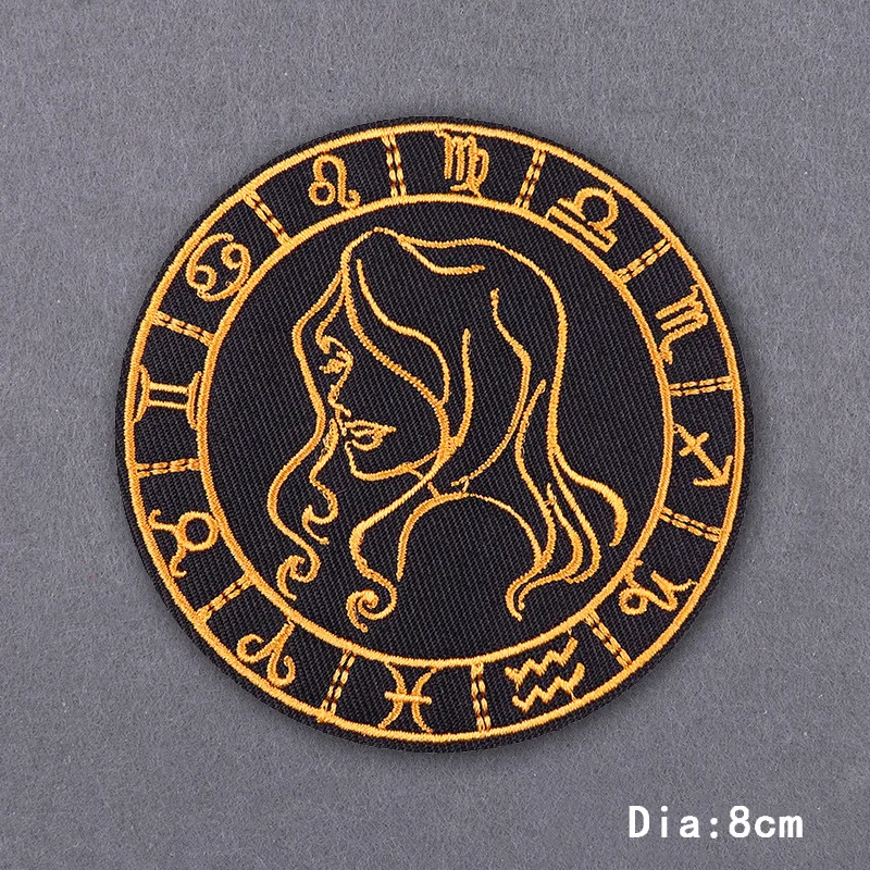 Parches bordados de doce constelaciones para ropa, parches de hierro de Virgo para decoración de ropa, insignias adhesivas fusibles