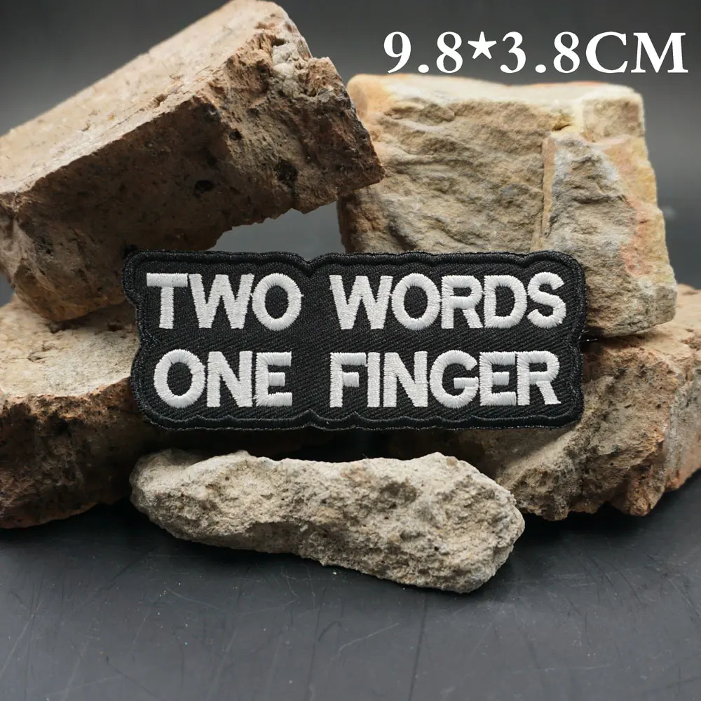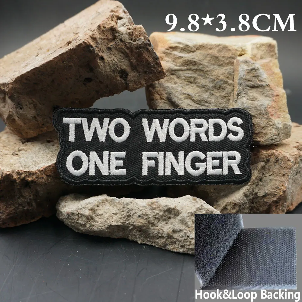 Parches bordados de dos palabras con un dedo, aplique de etiqueta de costura, banda de motorista punk, insignia de ropa de Rock con respaldo de gancho o coser