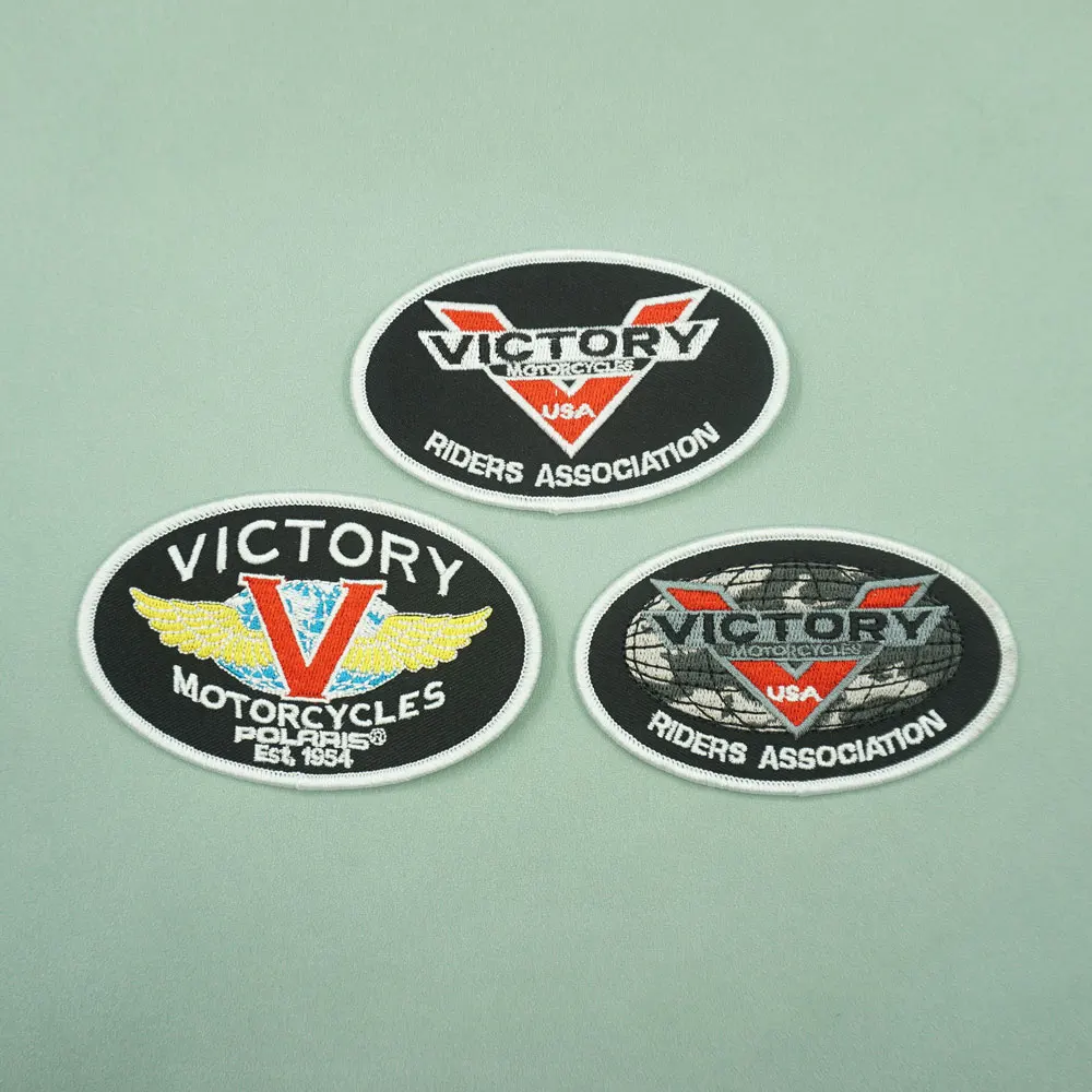Parches bordados con el logo de la marca de la motocicleta, cosido y gancho de respaldo