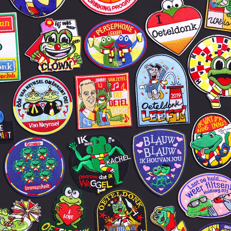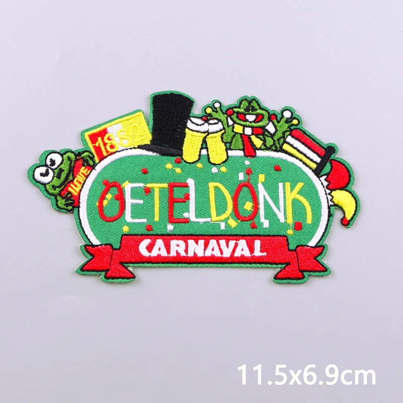 Parches bordados de emblema Oeteldonk en ropa Parche de carnaval de los Países Bajos Parches de hierro para pegatinas de ropa Insignias decorativas