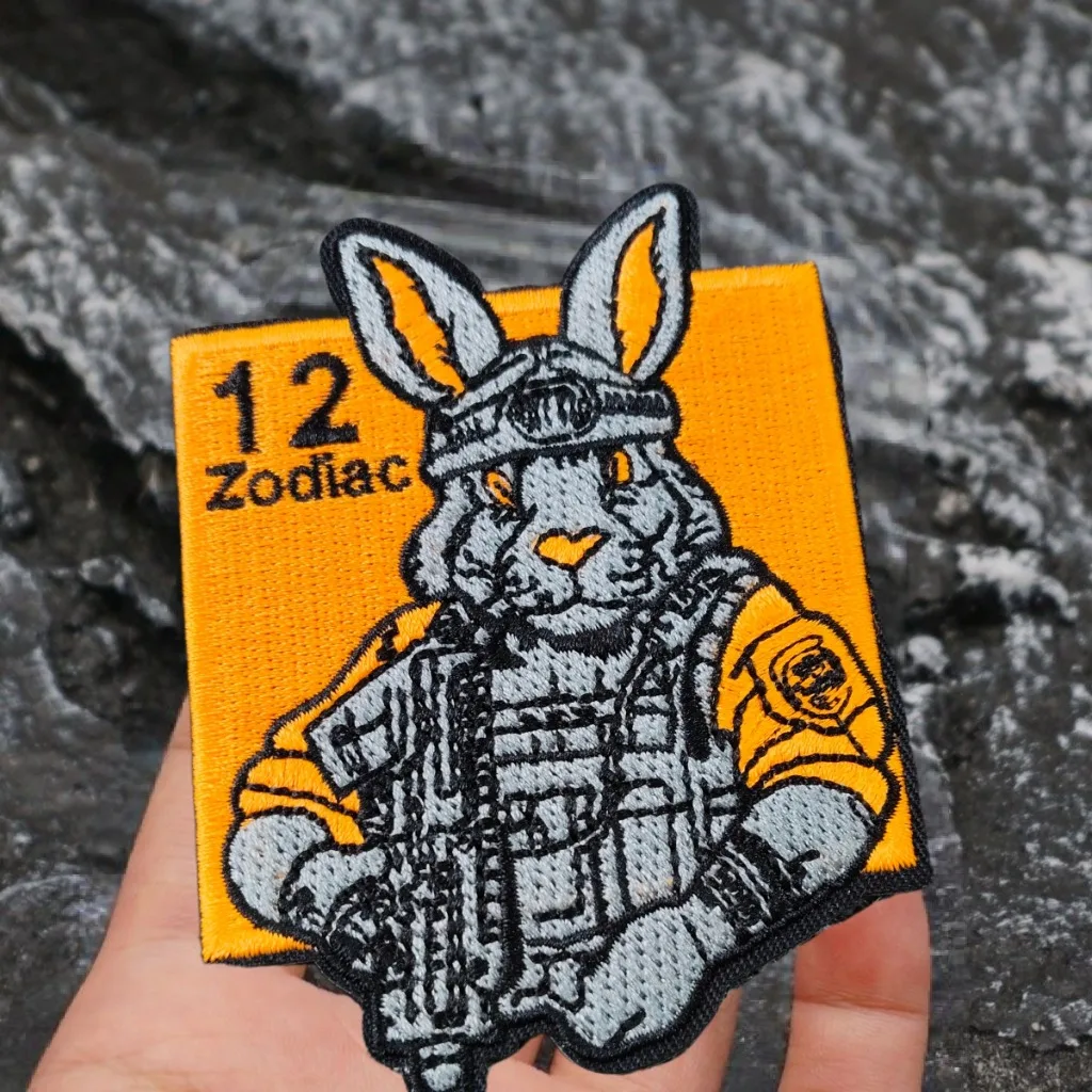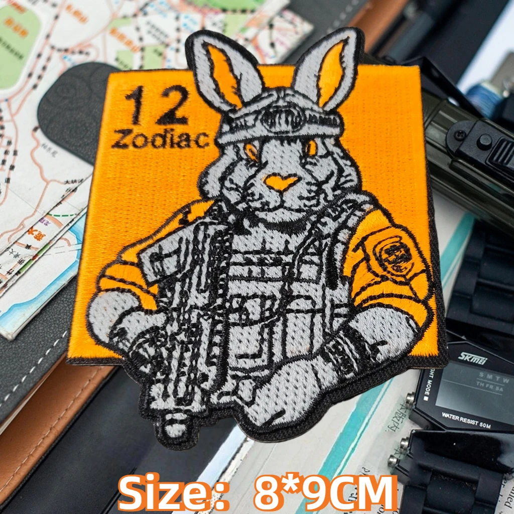 Bestia Guerrero militar 3D bordado parches Zodiaco conejo ametralladora soldado tácticas moral insignia chaleco sombreros mochila apliques