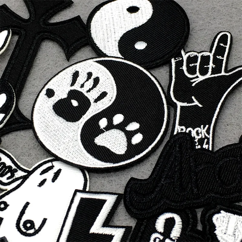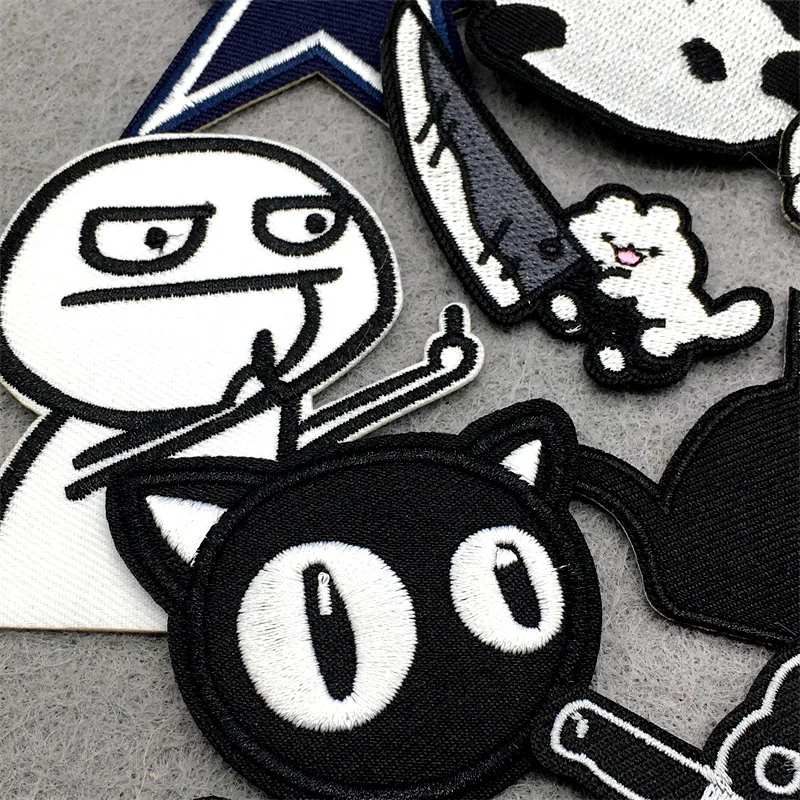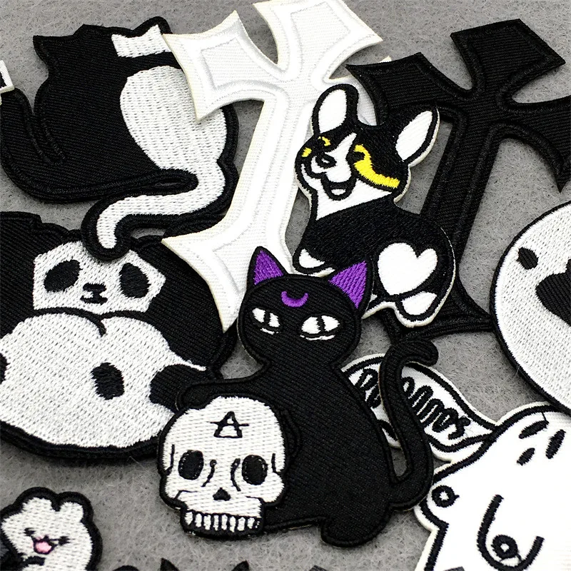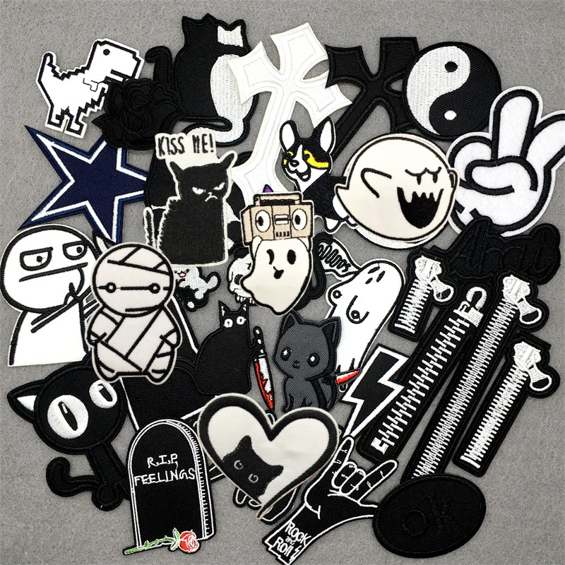 30 unids/lote de parches bordados en blanco y negro para ropa, parches para planchar con dibujos animados DIY para ropa, apliques, pegatinas con cremallera