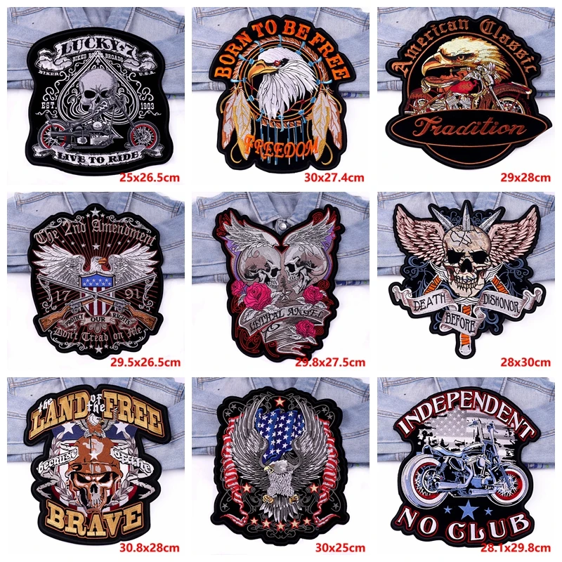 Parches bordados con espalda grande para motociclista, parches termoadhesivos para planchar para ropa, pegatina de costura Punk