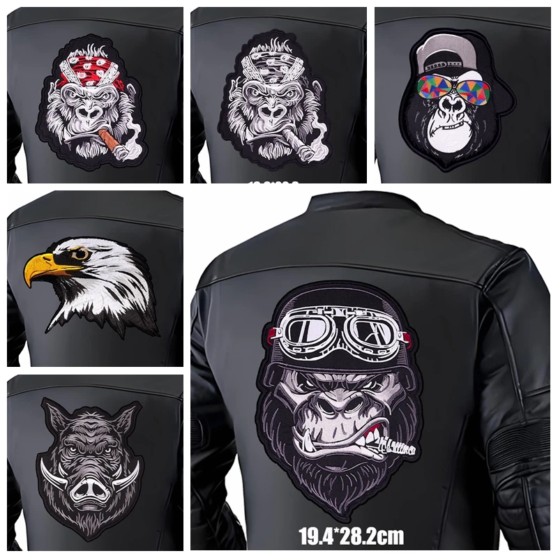 Parches bordados en la espalda grande, parche para motocicleta de mono para fumar, chaquetas de cuero, insignias bordadas para pantalones vaqueros, parches para planchar con calavera DIY
