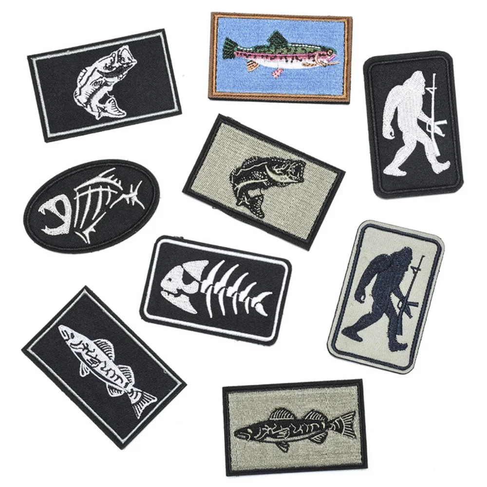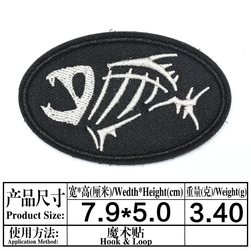 Parches bordados de espina de pescado, pegatinas de las fuerzas especiales, insignia de bucle de gancho táctico militar, mochila, chaqueta, apliques de pesca de moda