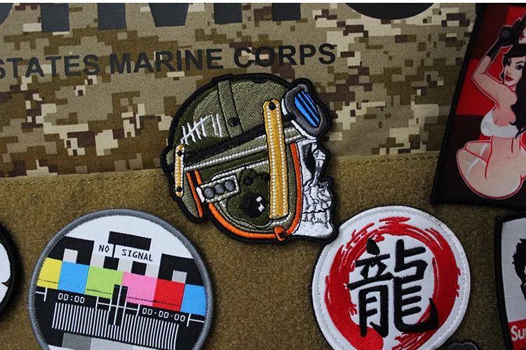 Parches bordados de esqueleto para piloto y cisterna, insignias tácticas para casco, ropa, camiseta, bolsa, apliques DIY