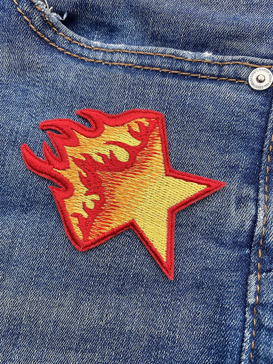 Parches bordados de estrellas quemadas, insignias bordadas de hierro, telas aplicadas para ropa, prendas, luz roja para bricolaje, diseño fresco