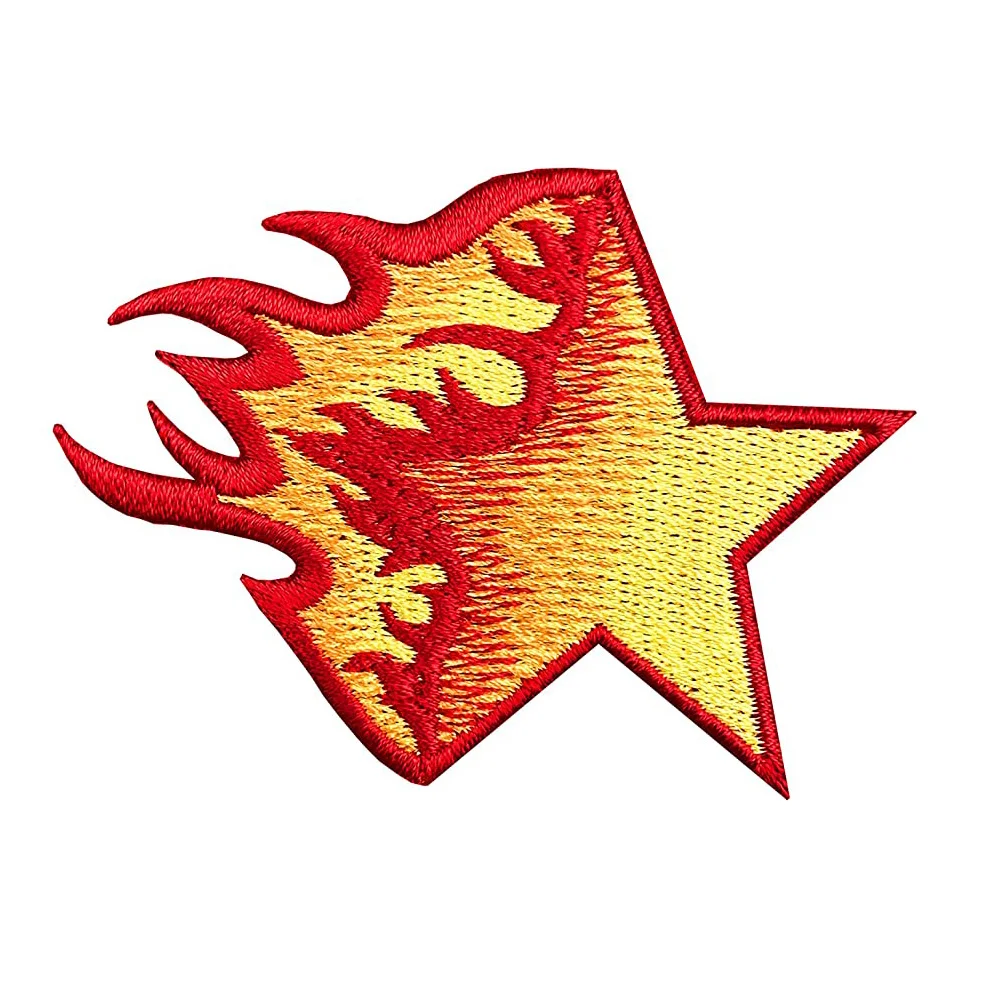 Parches bordados de estrellas quemadas, insignias bordadas de hierro, telas aplicadas para ropa, prendas, luz roja para bricolaje, diseño fresco