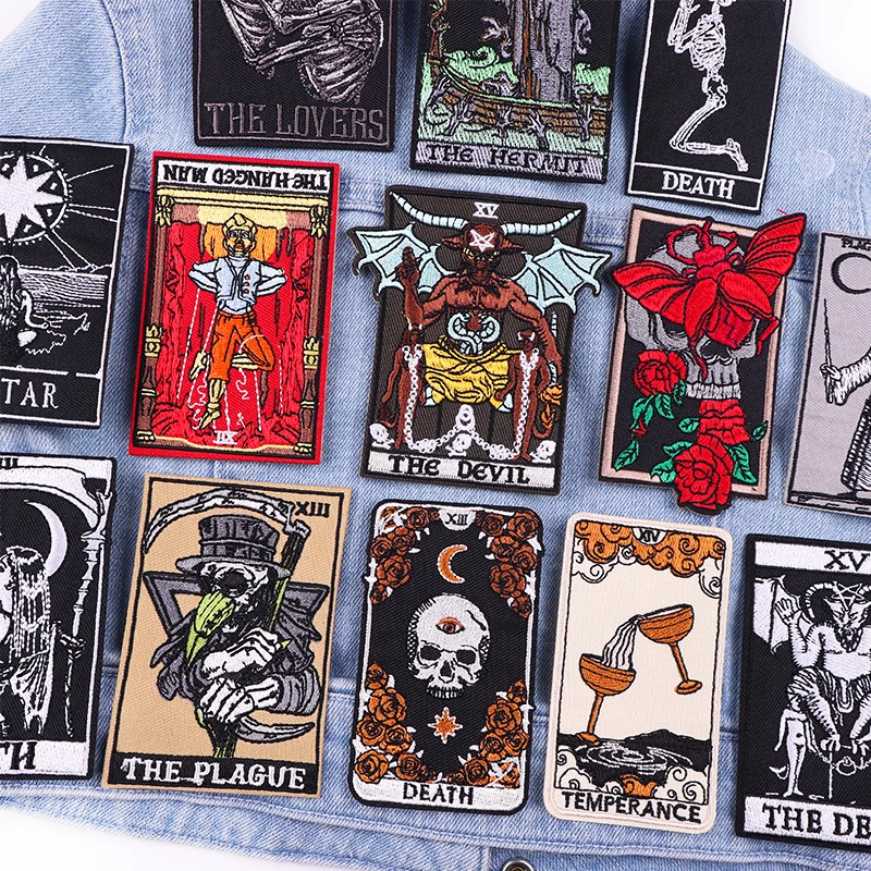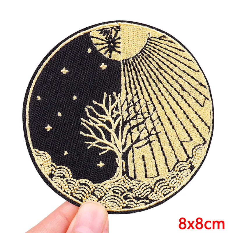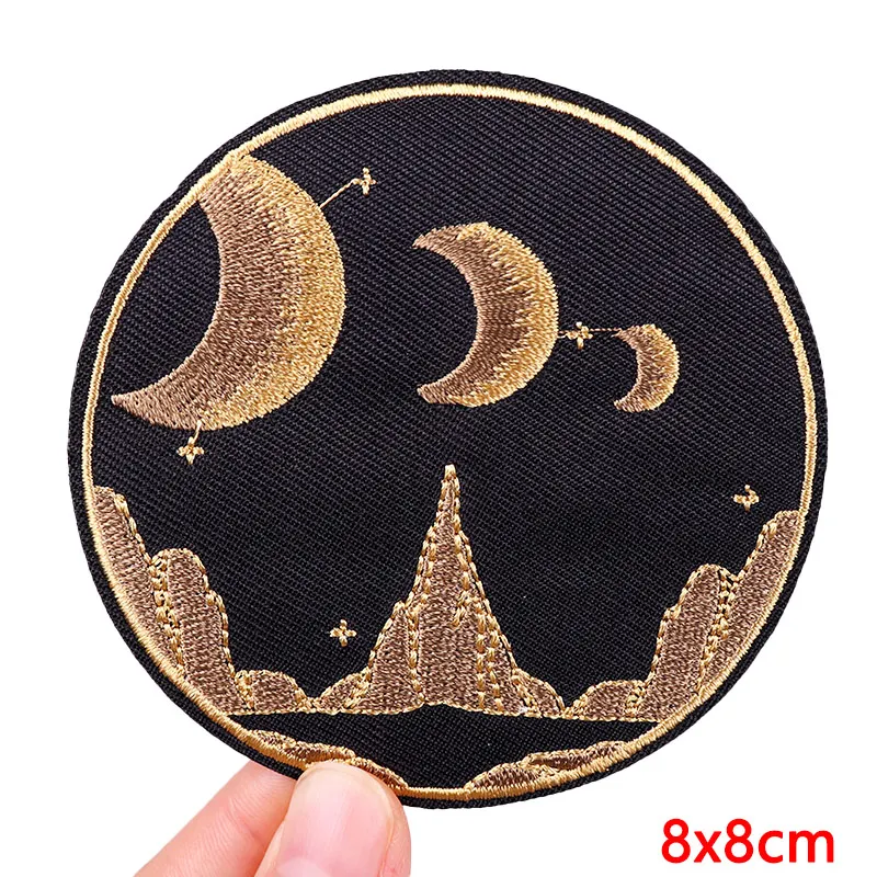Arco Iris sol planeta parche dibujos animados/Animal gato bordado parche hierro en parches para ropa DIY Punk/Tarot coser ropa apliques