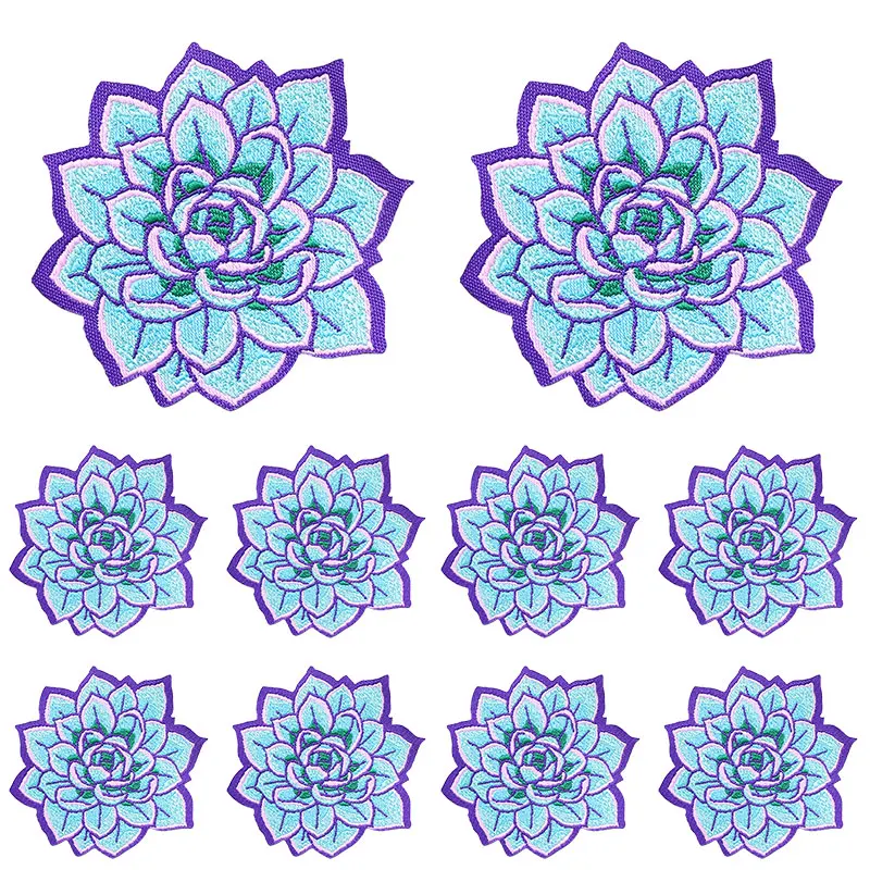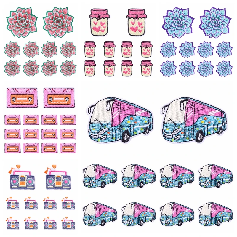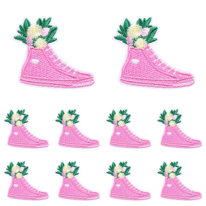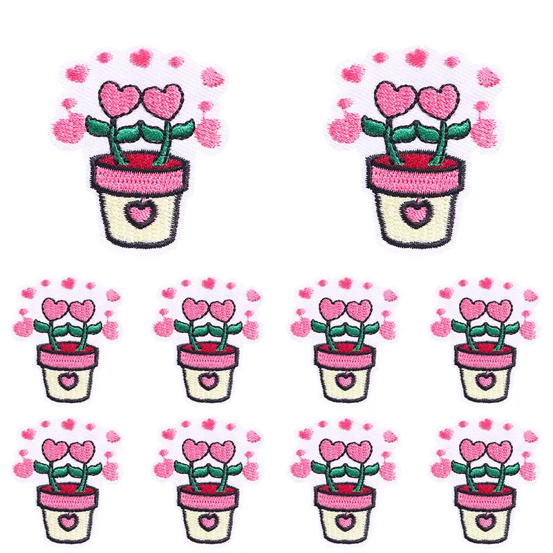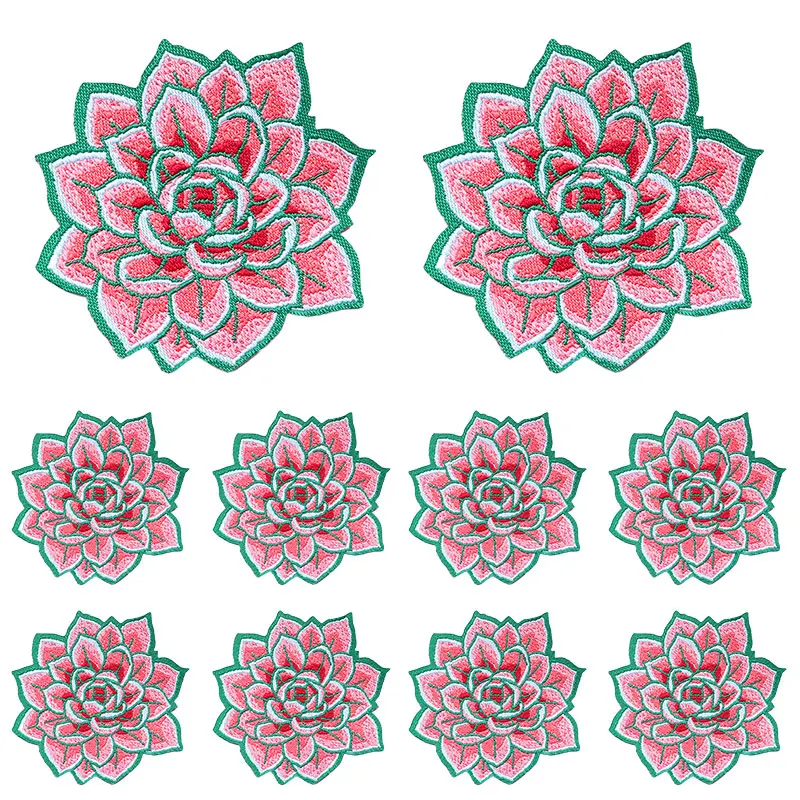 Parche de cinta para coche, parches bordados de flores Datura para ropa, Parche de estilo rosa de dibujos animados, parches para planchar para ropa DIY, 10 piezas