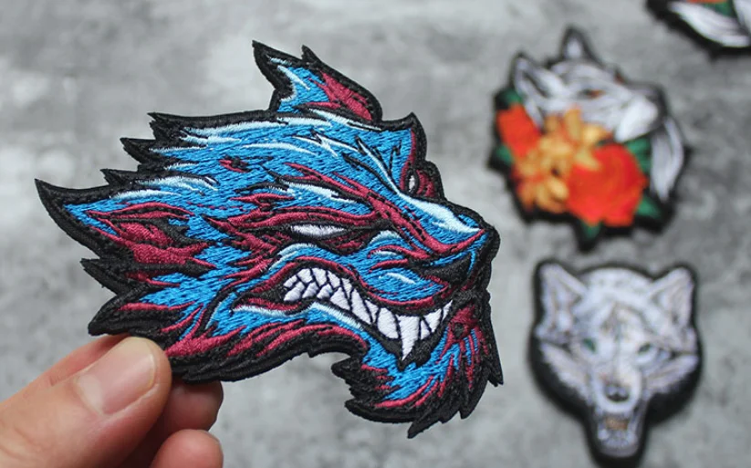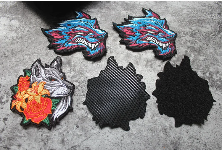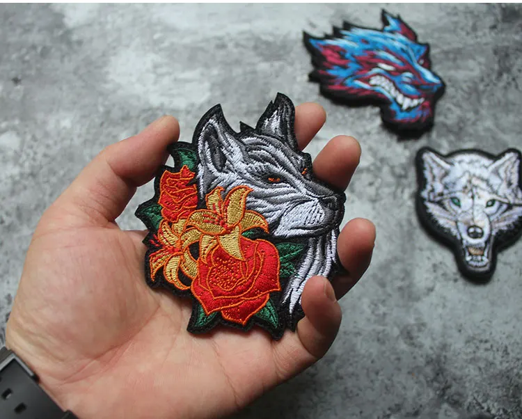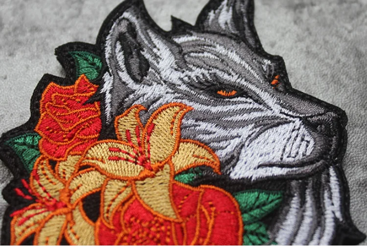 Parches bordados de flores de Lobo, insignia táctica, banda para el brazo, apliques de ropa