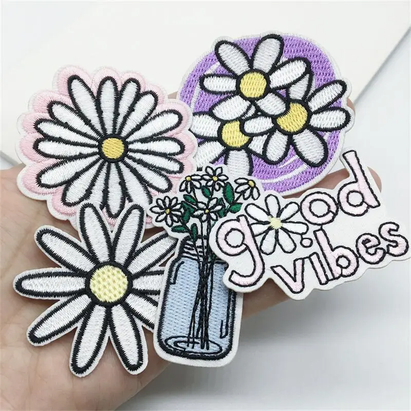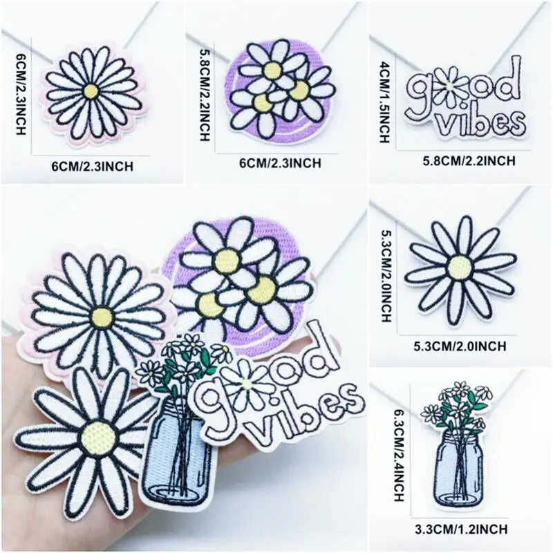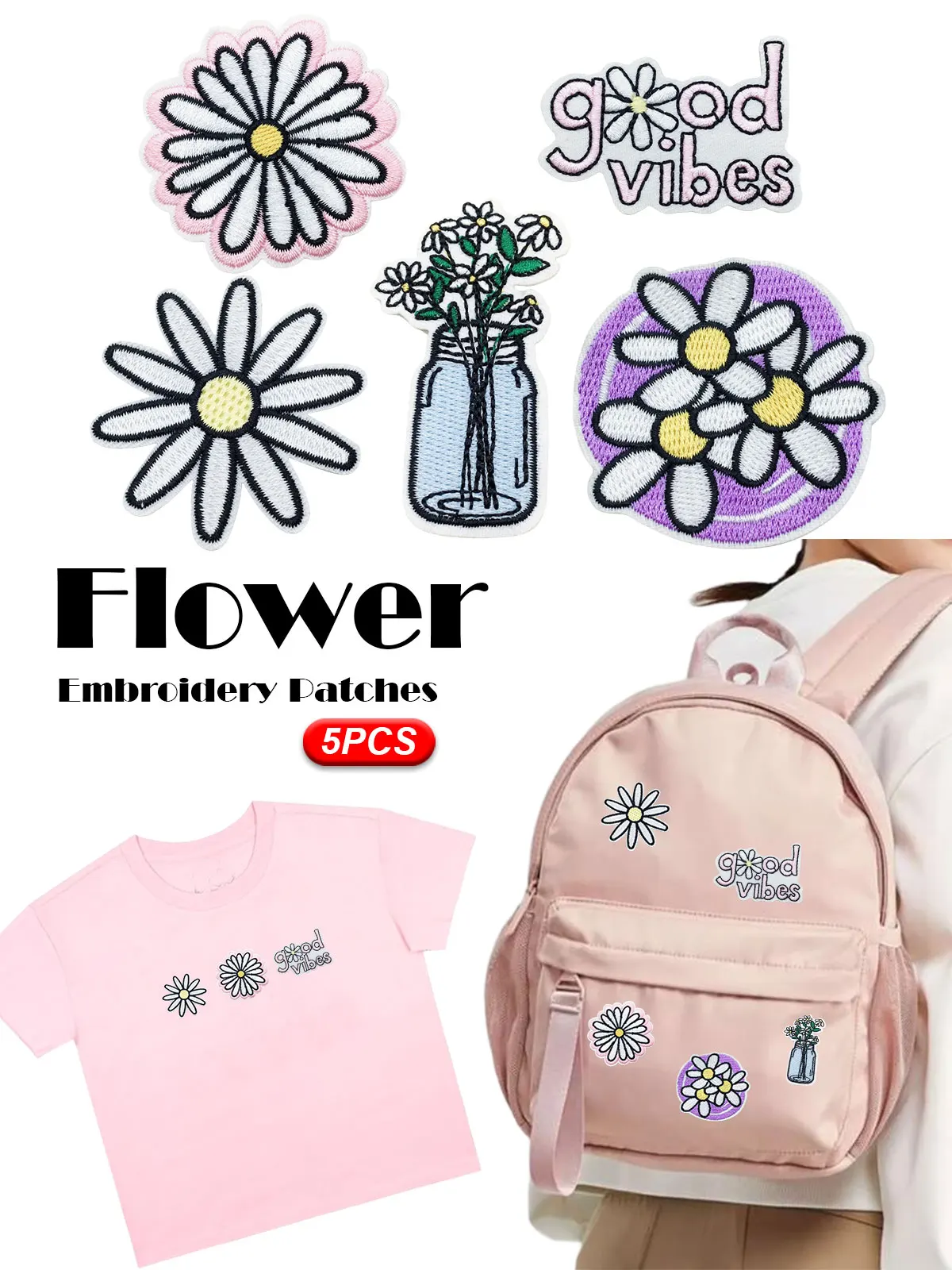 Parches de bordado de flores de 5, costura DIY para camiseta, bolsos, sombrero, chaqueta, zapatos, parche de tela decorativa.