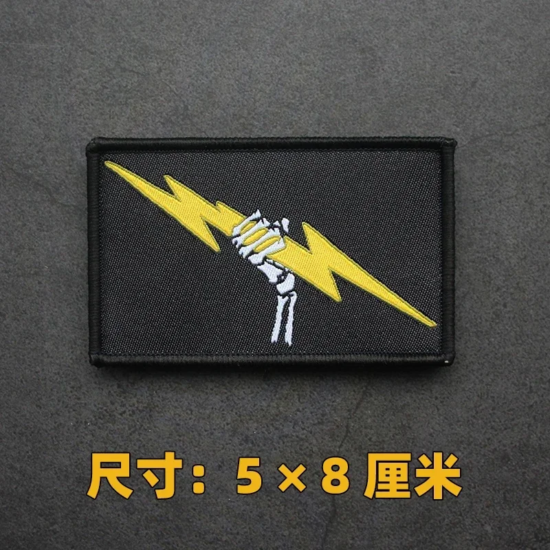Parches bordados de gancho y bucle de relámpago de calavera brazalete táctico insignia de moral de perno equipo al aire libre mochila pegatina decorativa