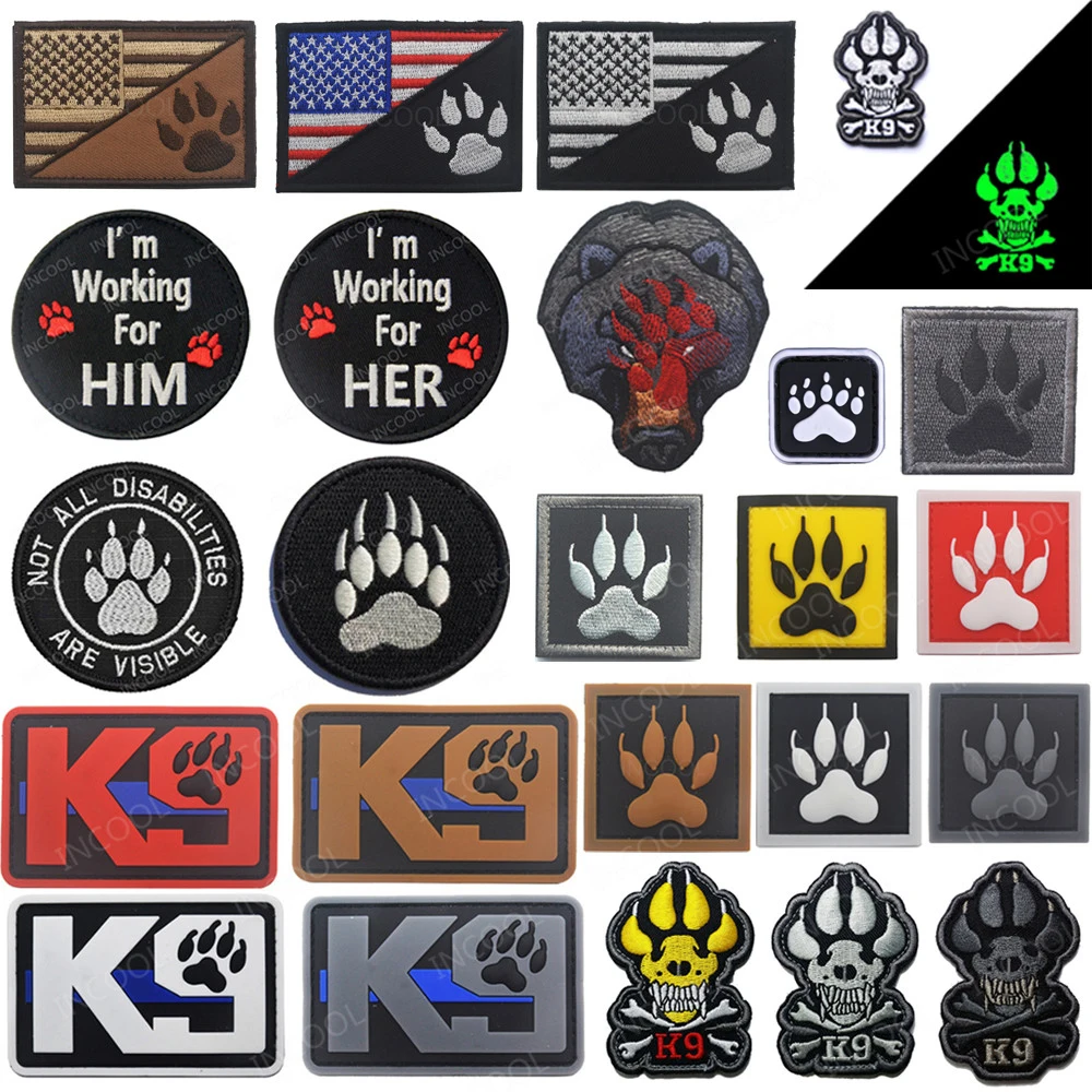 [Especificación]:Bandera de EE. UU. Americana K9 Garra de perro Parches bordados Ejército Militar Emblema táctico Insignias Apliques Bordado Insignias Banderas