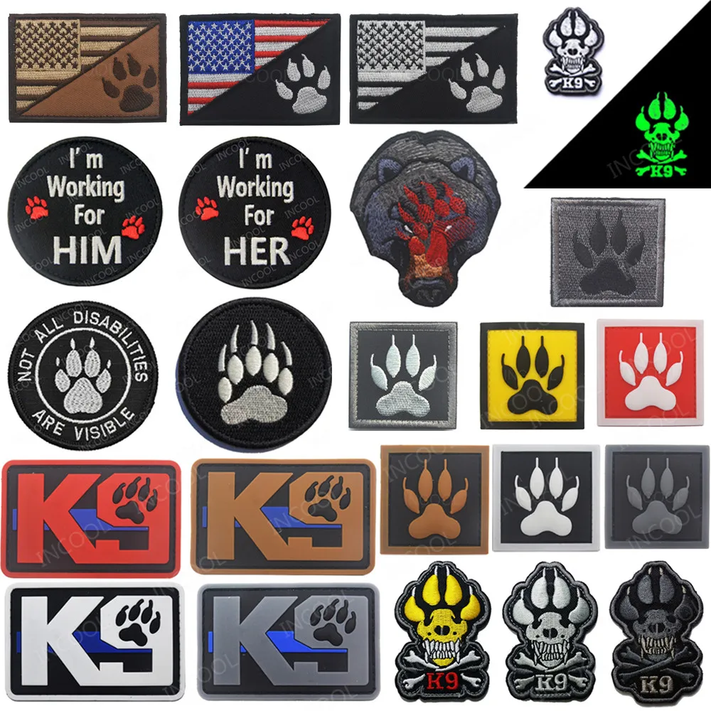 [Especificación]:Bandera de EE. UU. Americana K9 Garra de perro Parches bordados Ejército Militar Emblema táctico Insignias Apliques Bordado Insignias Banderas
