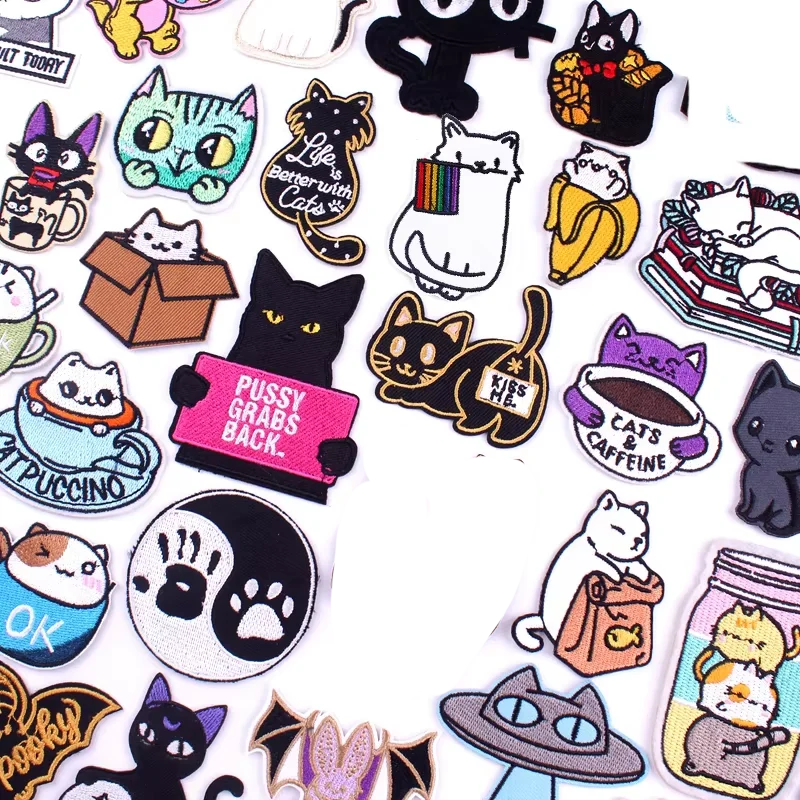 Parche de gato Hippie, bonitos apliques de animales pequeños, parches bordados para ropa, parches de dibujos animados DIY en ropa para niños, insignias