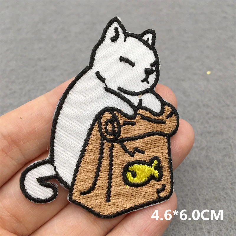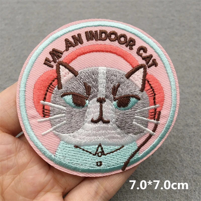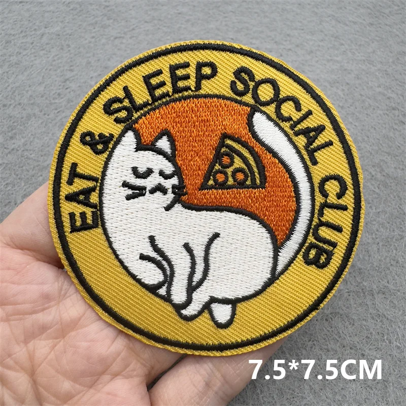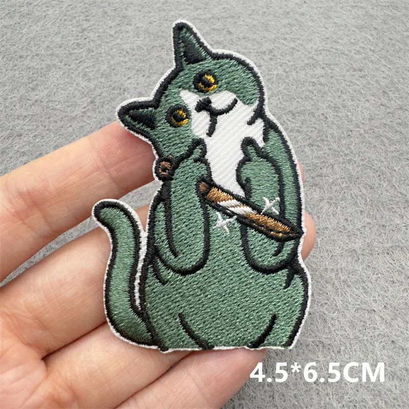 Parches de bordado TEAM CAT, apliques para ropa, parches de hierro para coser DIY, accesorios de decoración de rayas de dibujos animados PUNK
