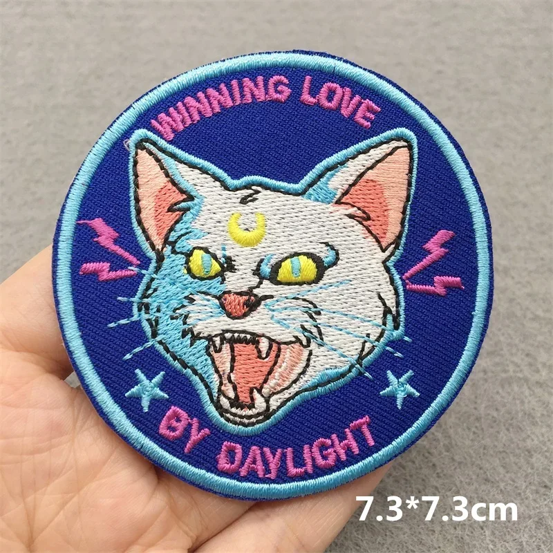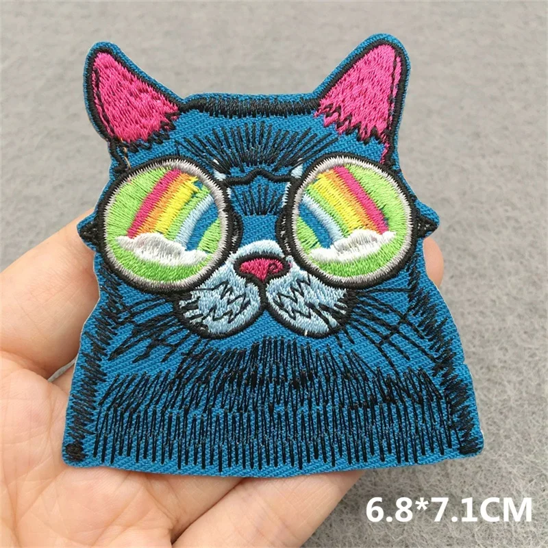 Parches bordados de gato de dibujos animados divertidos para Pegatinas de ropa parche de animales parches de hierro en ropa DIY insignia de apliques de costura