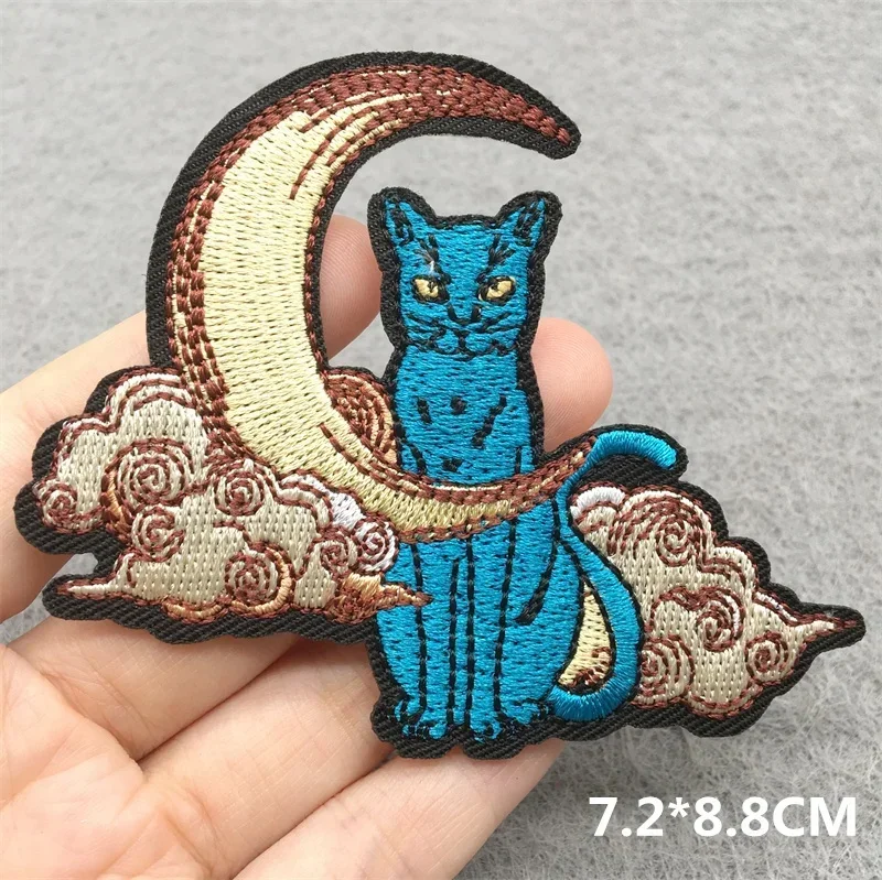 Parches bordados de gato de dibujos animados divertidos para ropa, pegatinas de animales, parches para planchar en la ropa, insignia de aplique de costura DIY