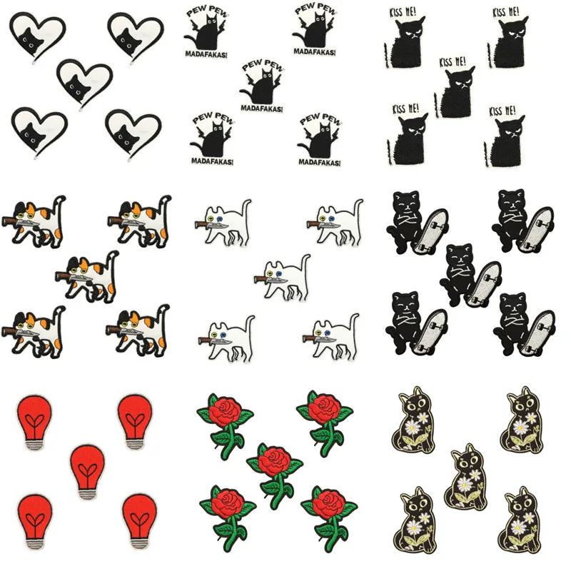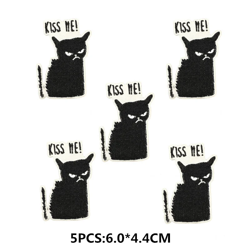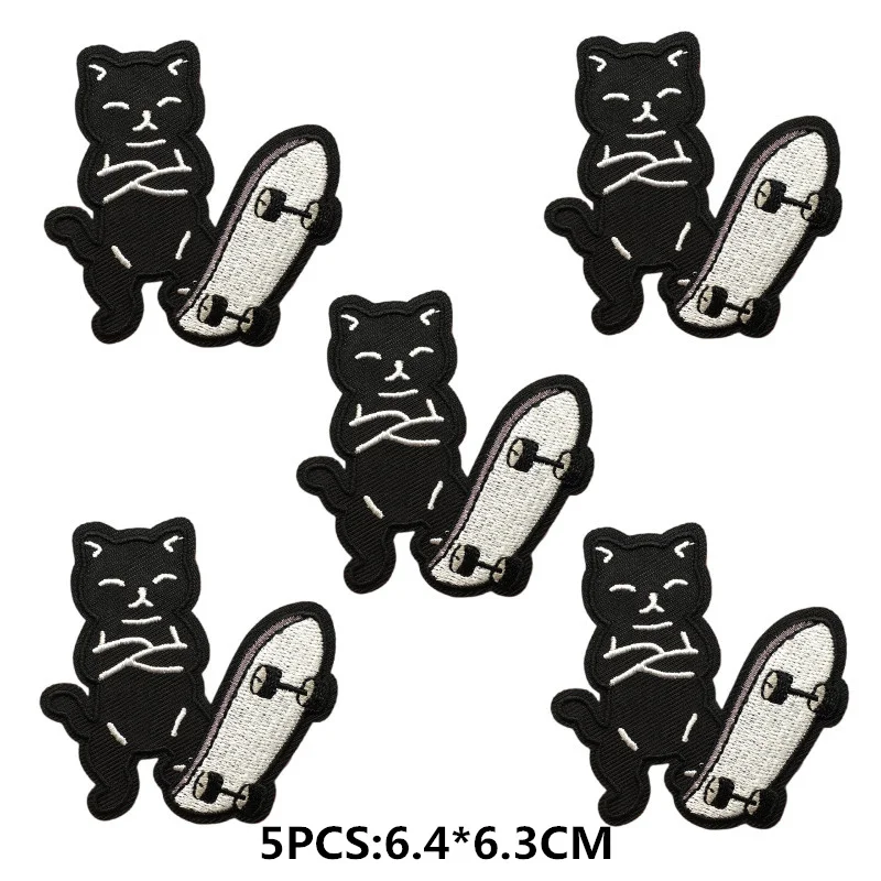 Parches bordados de gato de dibujos animados para ropa, pegatinas de animales DIY, parches para planchar en la ropa, 5 unidades por lote