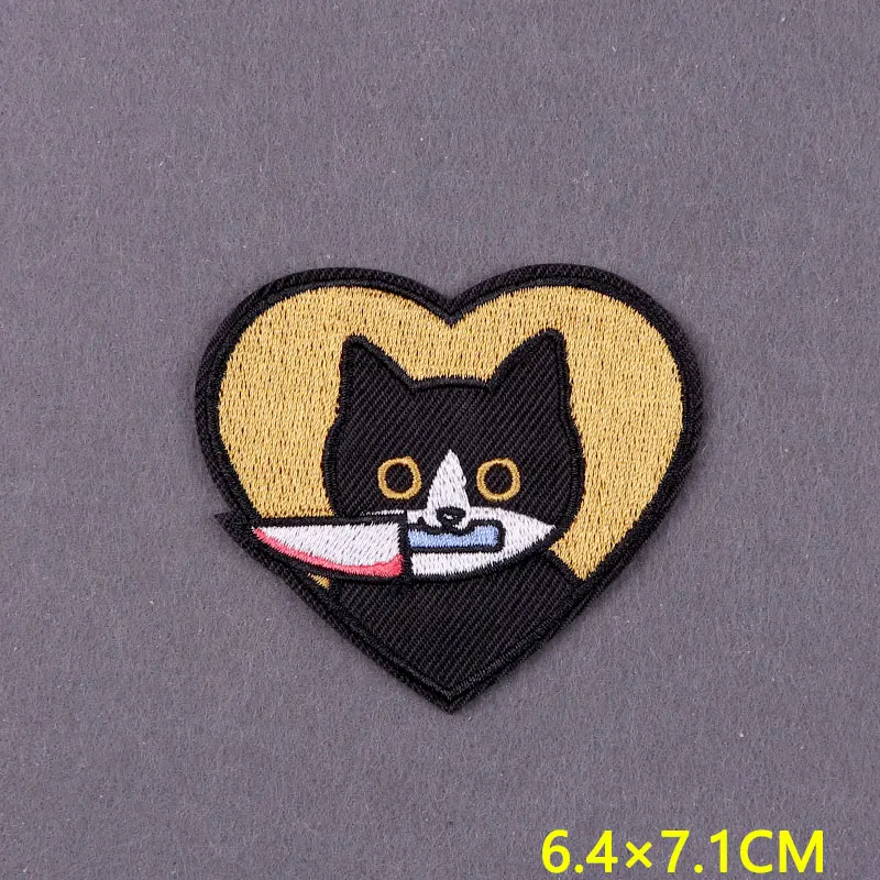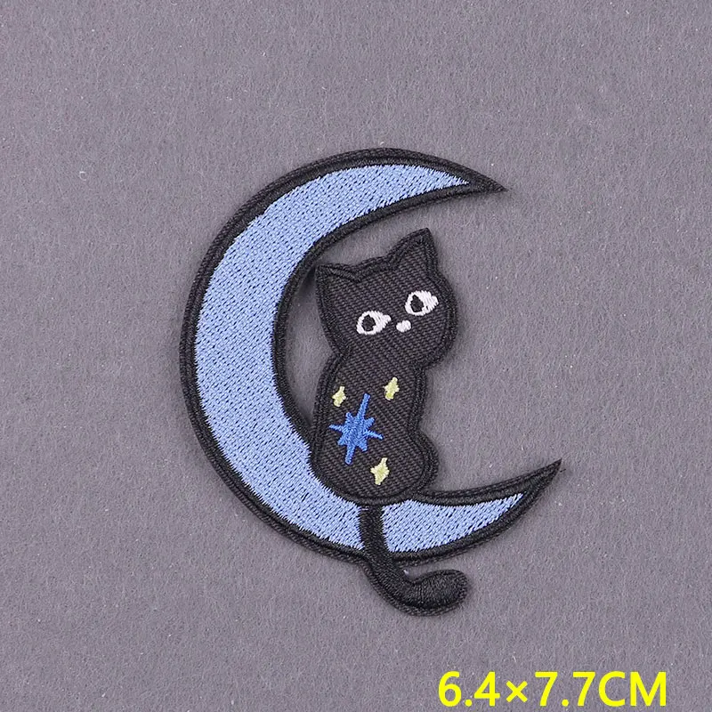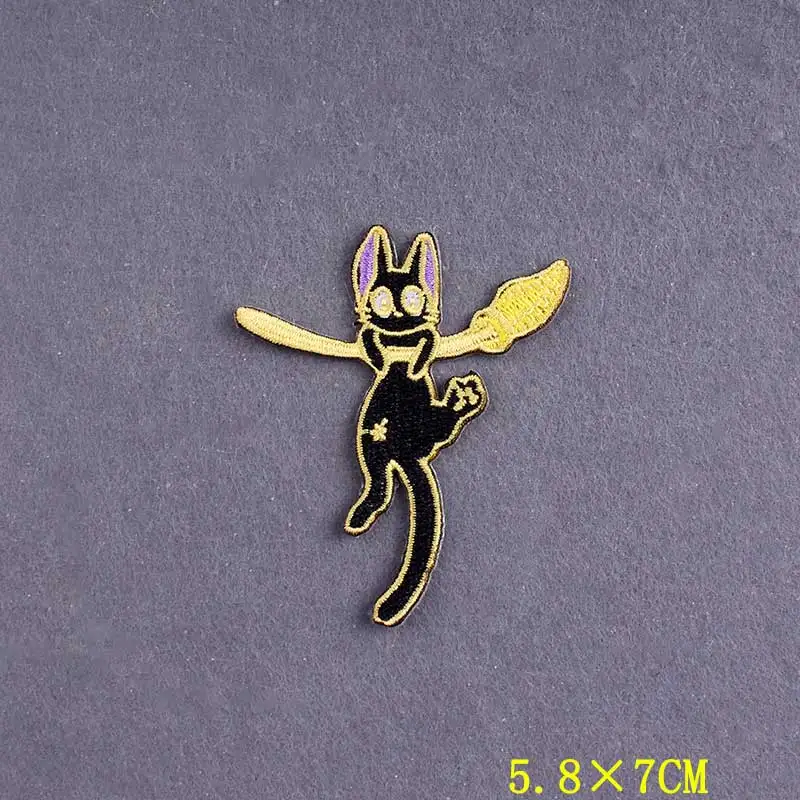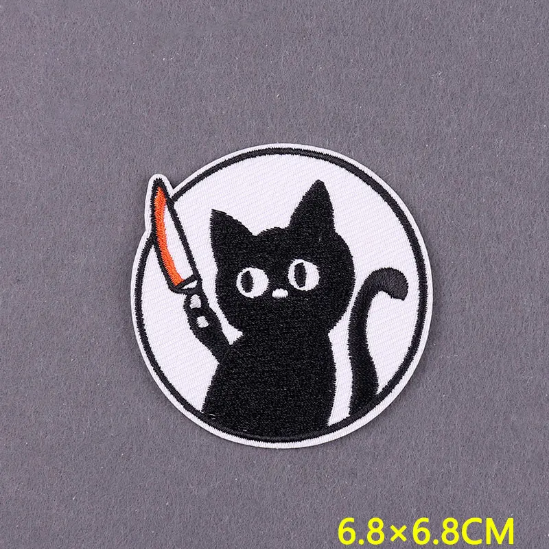 Divertido gato bordado parches en la ropa misterio rayas hierro en parches para ropa DIY bruja gato insignias en la decoración de la mochila