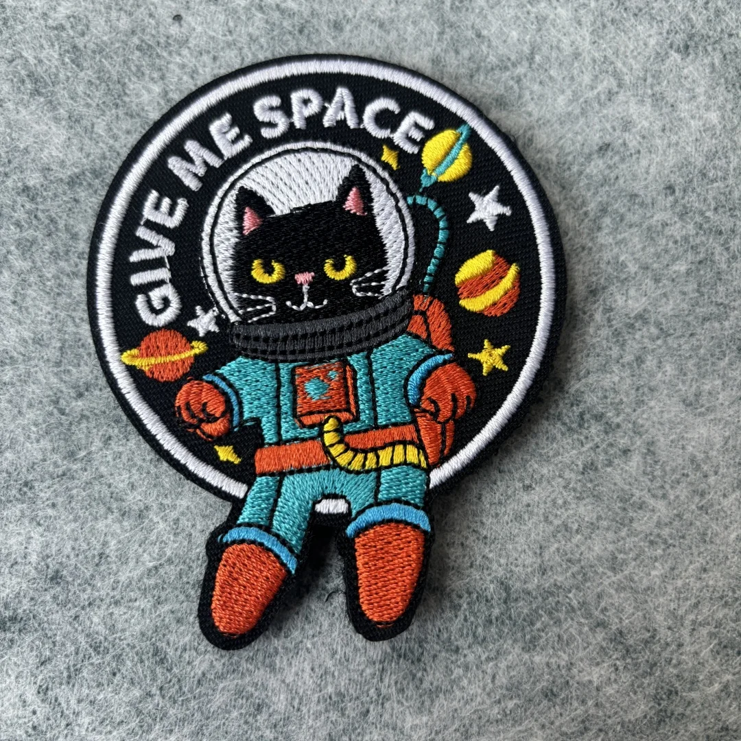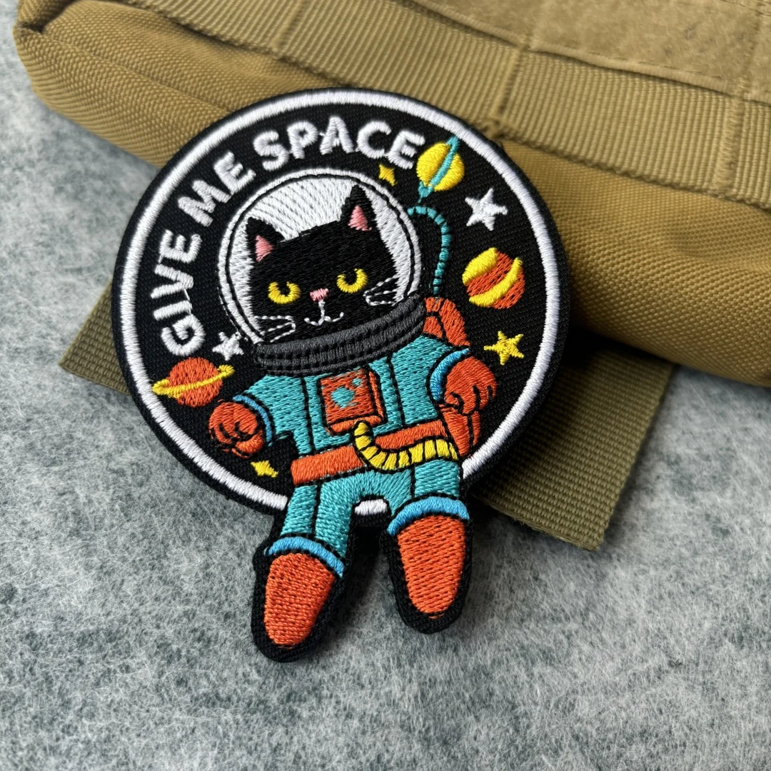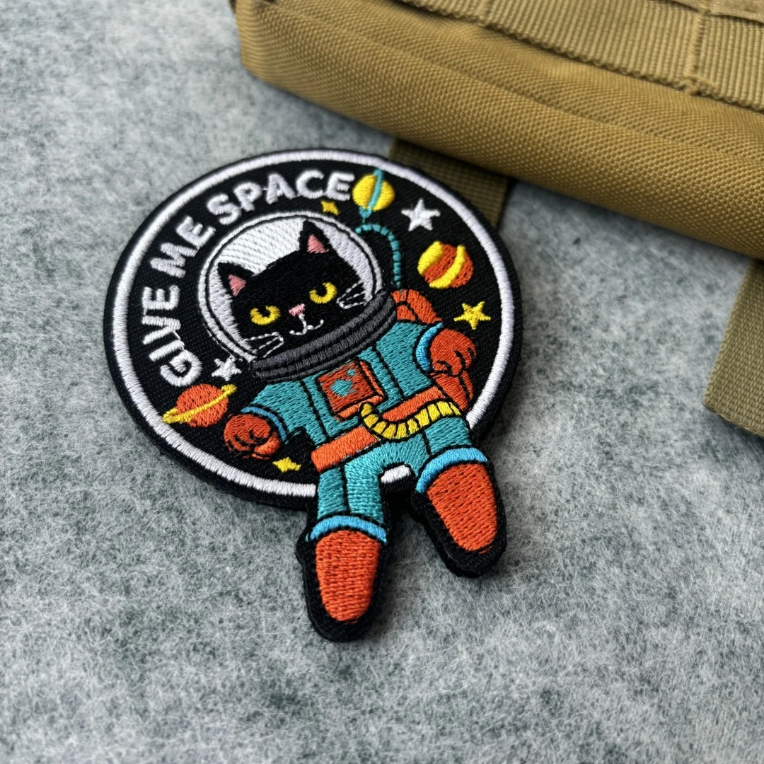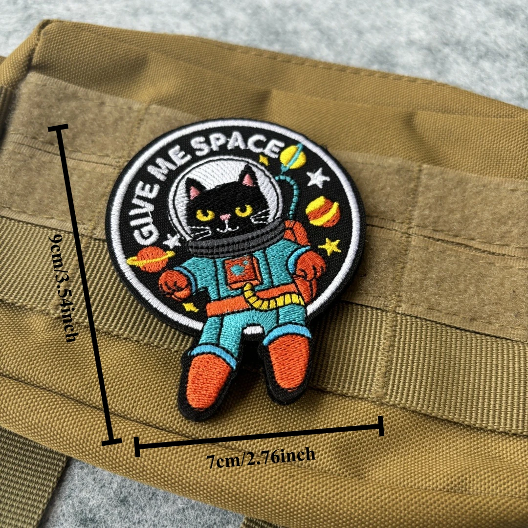 Parches bordados de gato espacial divertido, parche de gancho y bucle de dibujos animados, brazalete del ejército, insignia de moral militar, mochila, pegatinas para ropa